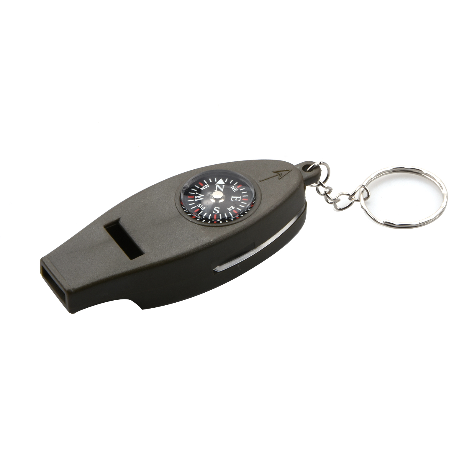 It is a 4 in 1 emergency whistle with a compass, magnifying glass, whistle and thermometer for wilderness survival.