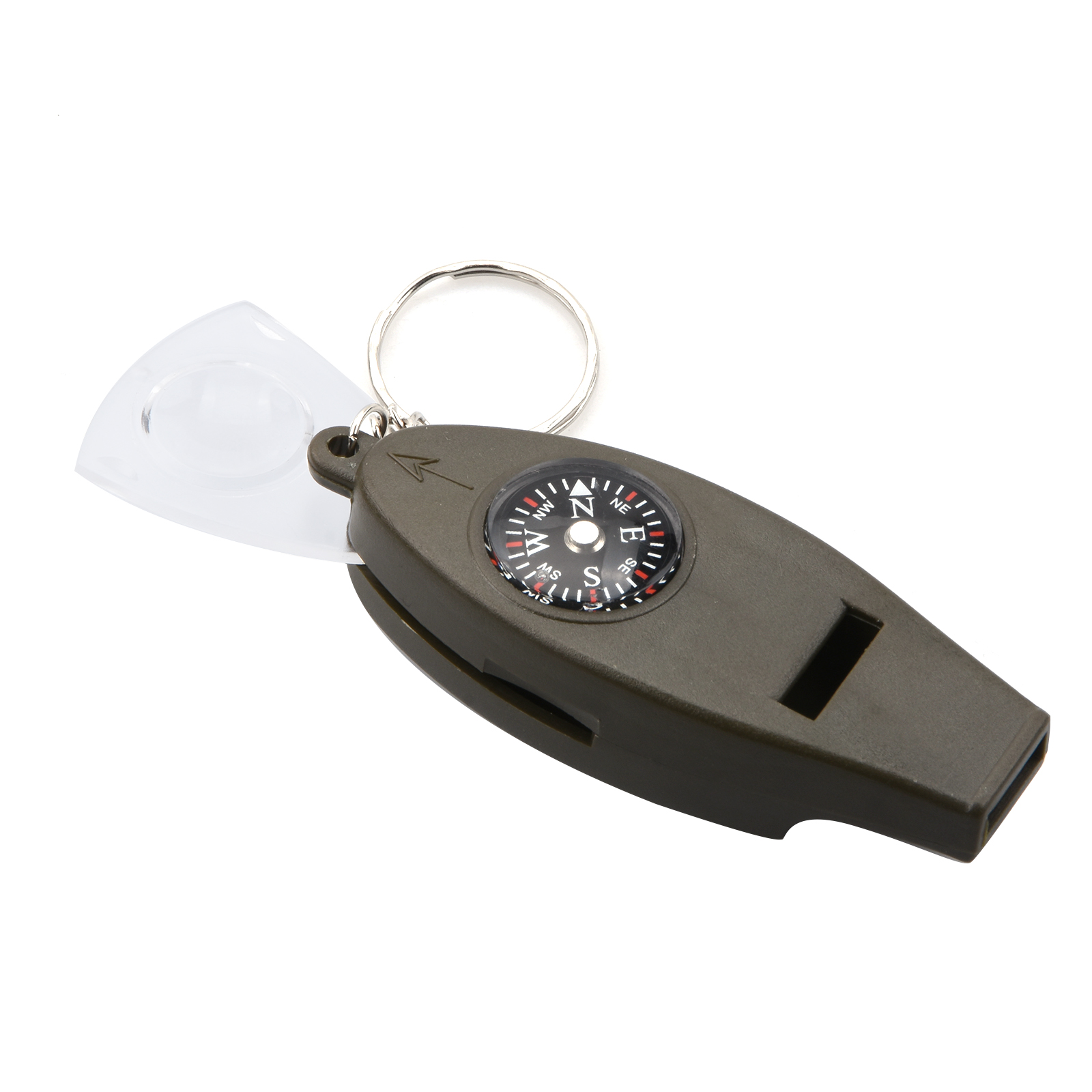 Emergency Whistle Compass Magnifier Thermometer Crisp Sound Keychain Design 4 In 1 Multifunction Hiking Whistle Outdoor Supply