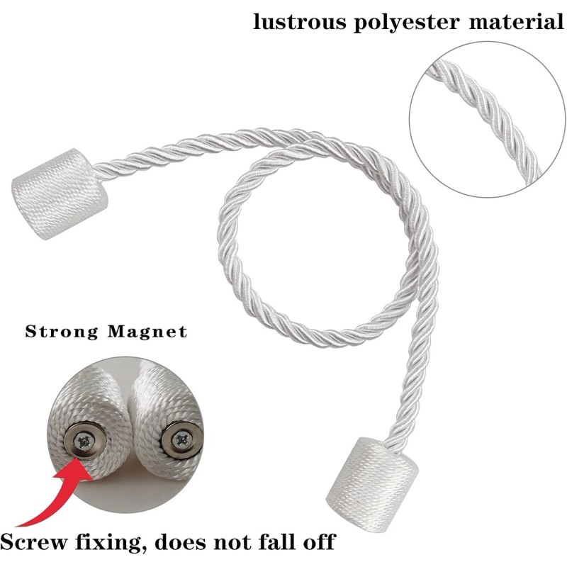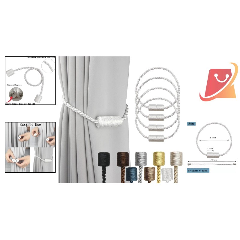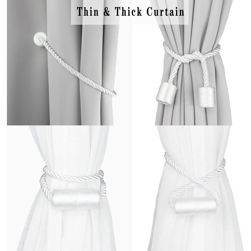 4 Pack Magnetic Curtain Tiebacks White Rope 17.5" Elegant Drapes Holdbacks