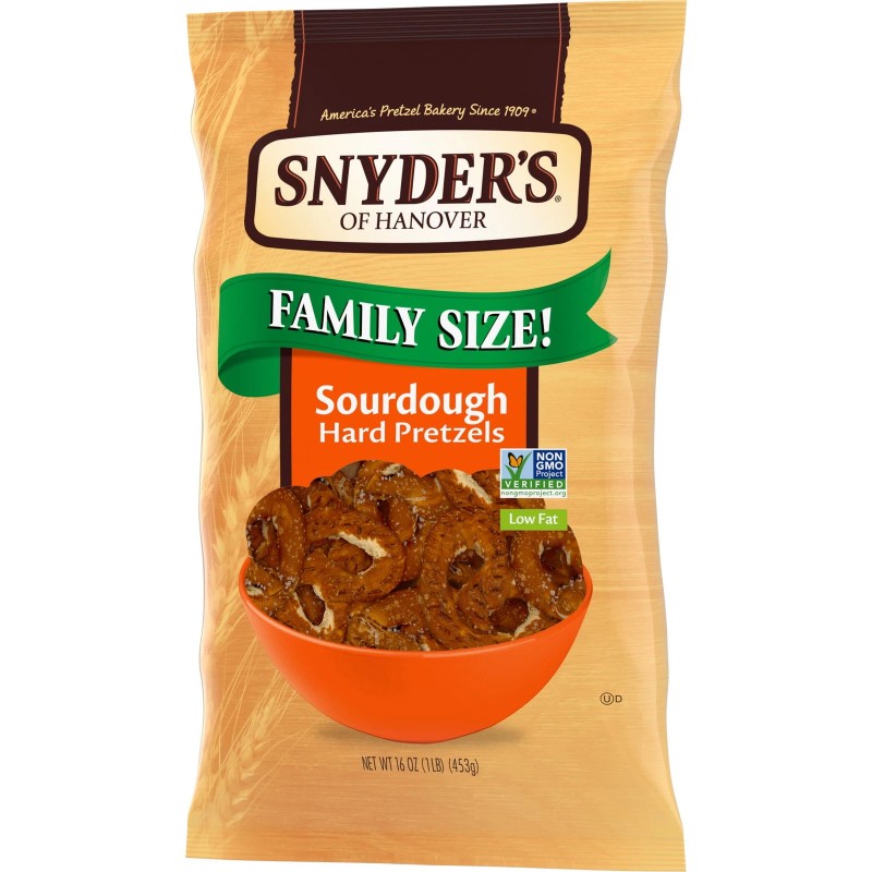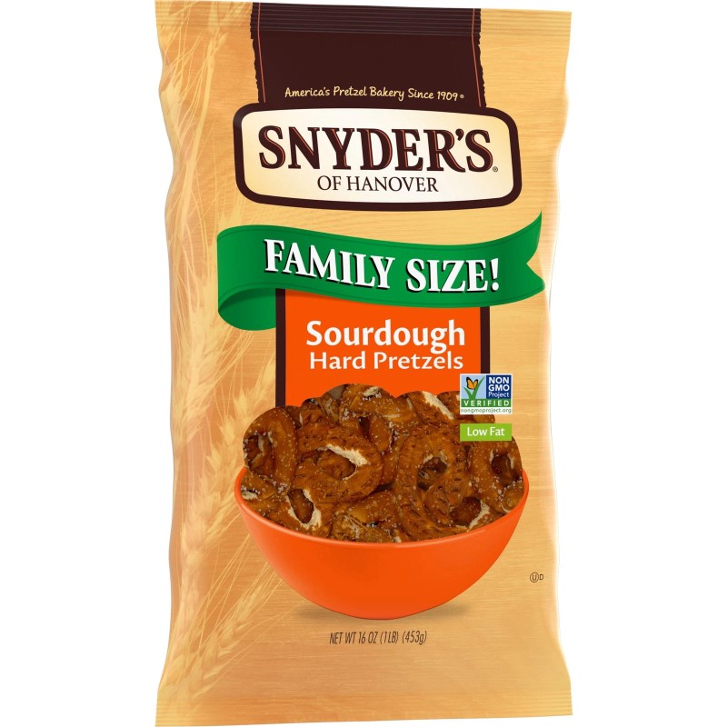 - Includes one (1) 16-ounce bag of Snyder's of Hanover Sourdough Hard Pretzels