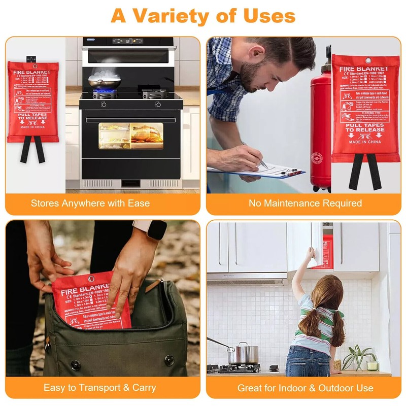 • Easy to Use: Simply pull the blanket out, unfold it, and gently cover the fire. Turn off the heat source and let the blanket smother the fire. Once cooled, dispose of the blanket.