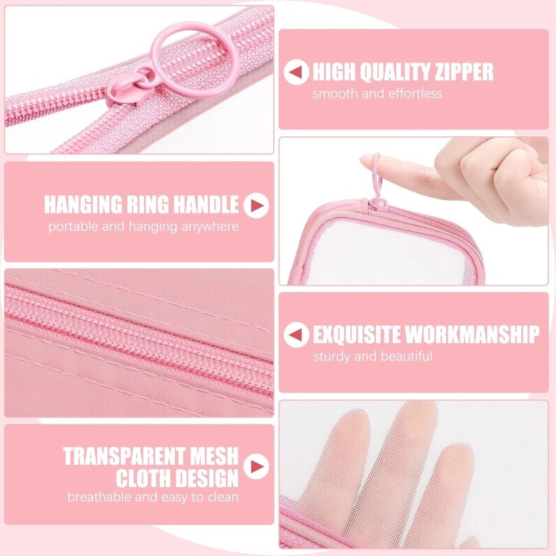 4 Pcs Mesh Makeup Bag Mesh Cosmetic Bag Travel Toiletry Pouch with Zipper Mini Makeup Cosmetic Purse for Daily Accessory