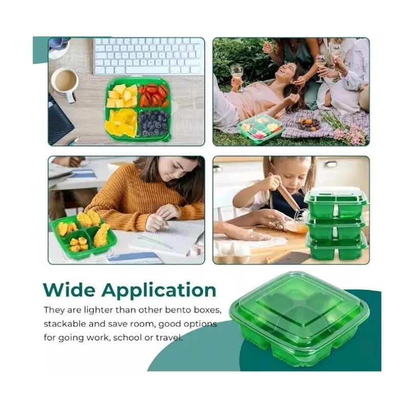 Unbranded 4 Plastic Bento Take Out Container Square Lunch able Food Disposable / Reusable