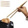 4 Set Bamboo Toast Tongs 12" Bagel Fruit Bread Bacon Straight Arm Toaster Wooden