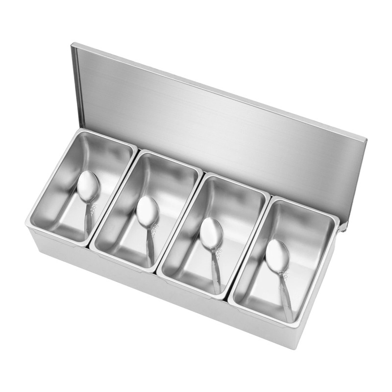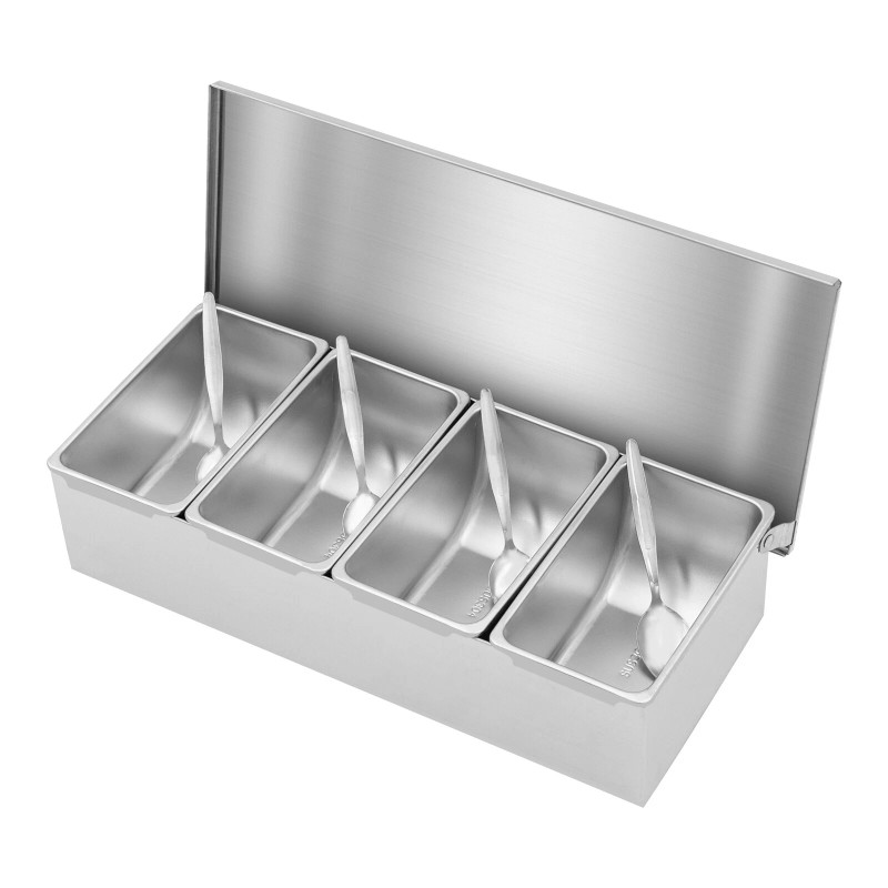 Unbranded 4-Slot Condiment Carrier with Spoons - Stylish Stainless Steel Organizer