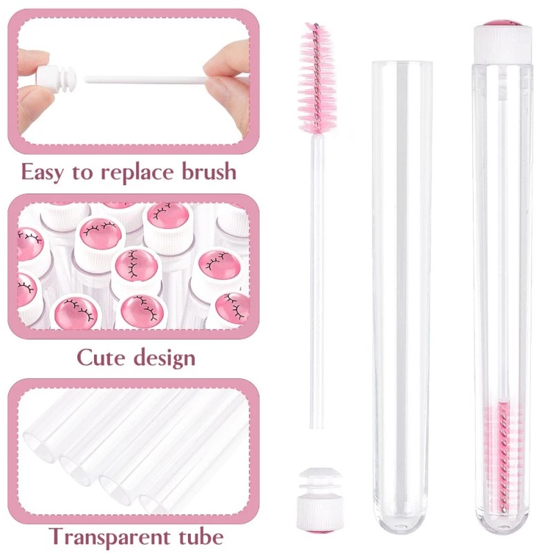 - Clean 2-In-1 Design: Come with clear tubes that allowe you to put the lash wand in the clean plastic tube to prevent contact with dust and keep your brush in good condition; brushes are attached to the lid to prevent loss and also can be easy replaced