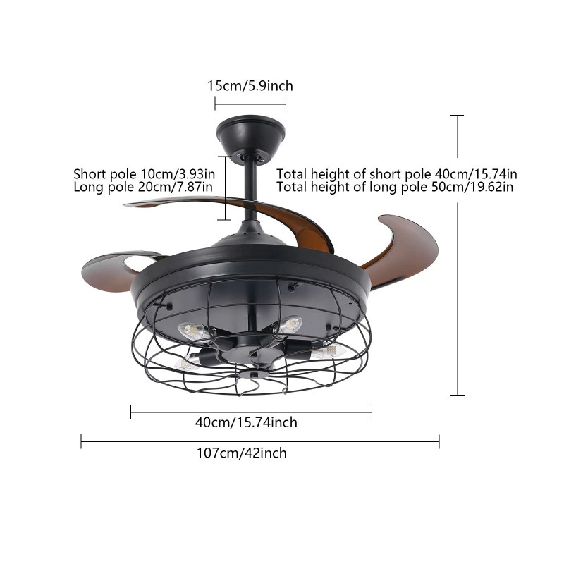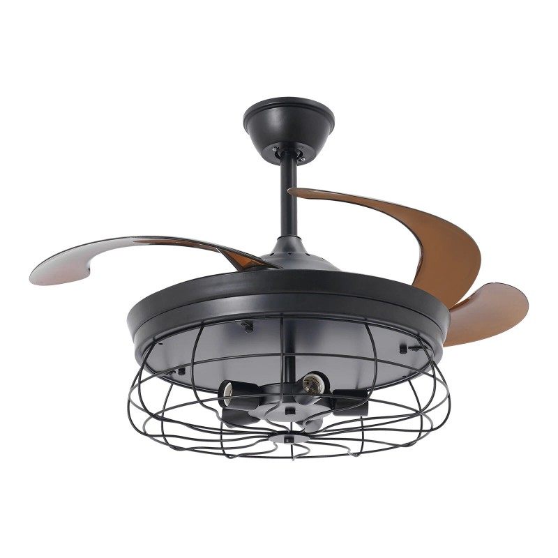 Elegant and Beautiful: The brown blades and black mesh cage lampshade provide it with a modern and industrial appearance, adding a sense of elegance to your room.