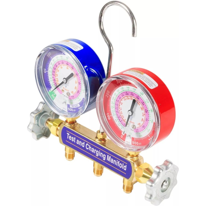 42001 Charging Manifold and Test, A/C Manifold Gauge, with 3-1/8" Gauge, Large Double Gauges, for Refrigerant Type R-22, R-404A, R-410A