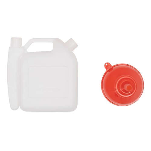 Funnel: The red funnel makes it easier to add fuel and less likely to leak.