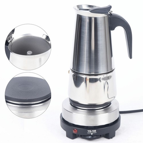 450ml Stainless Steel Espresso Maker w/Electric Stove 9 Cups Coffee Infusing Pot