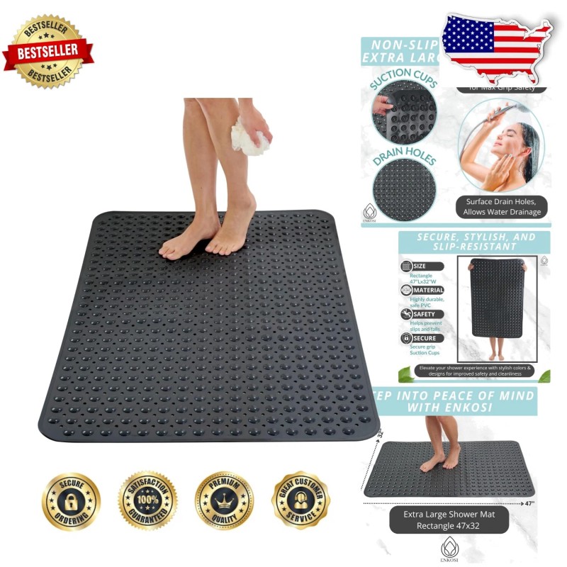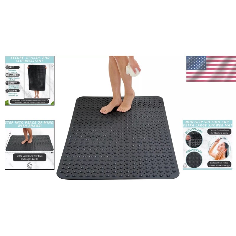 47x32 Inch Extra Large Non-Slip Shower Mat with Suction Cups - Black Elegance