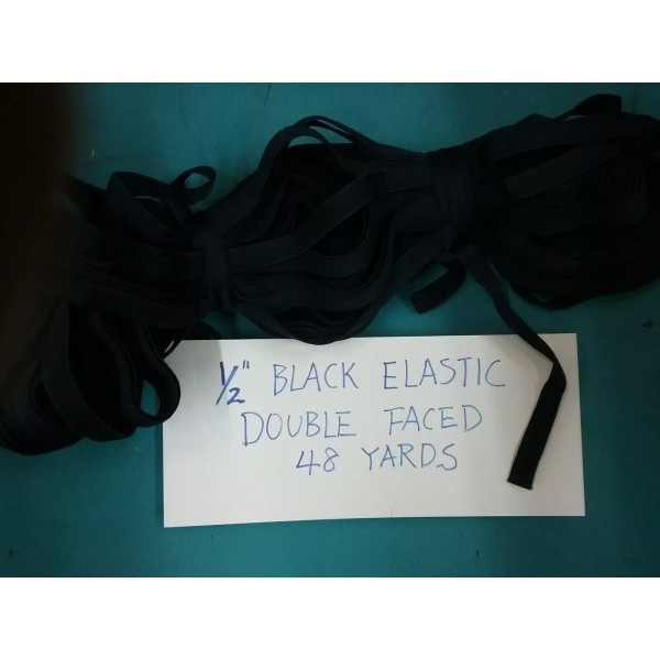 Unbranded 48 Yards 1/2" Inch Black double faced Flat Elastic, Mask DIY Ear Straps/Ties