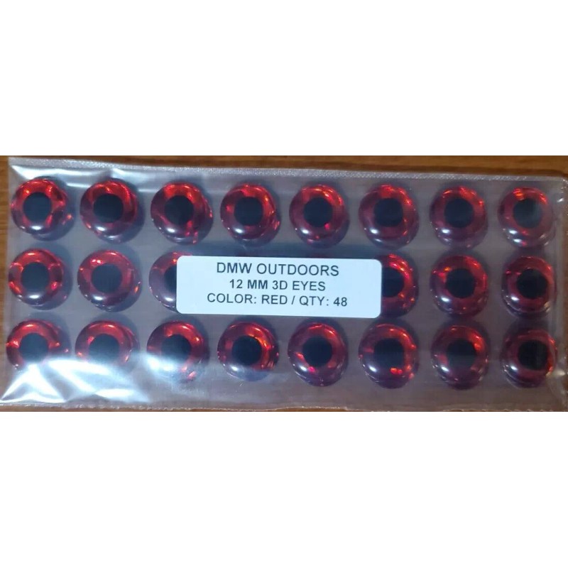 Unbranded 48pcs, Soft Holographic RED 3d adhesive fish eyes 12mm, Fly Tying