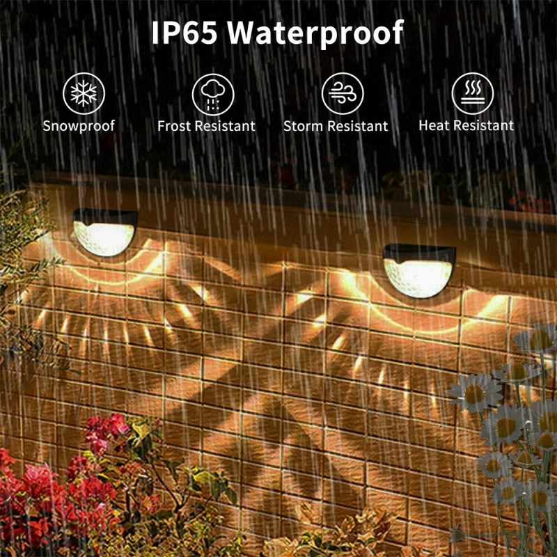 【IP65 Warterproof Outdoor Solar Light】- The solar deck lights are composed of sturdy and durable ABS shell, and equipped with high-quality poly-silicon solar panel with IP54 waterproof performance which allows it to withstand rain, snow, thunderstorm, frosting. No external wiring, No battery replacement, eliminate installation trouble and the risk of accidents. Provide safe and long time lighting to your life