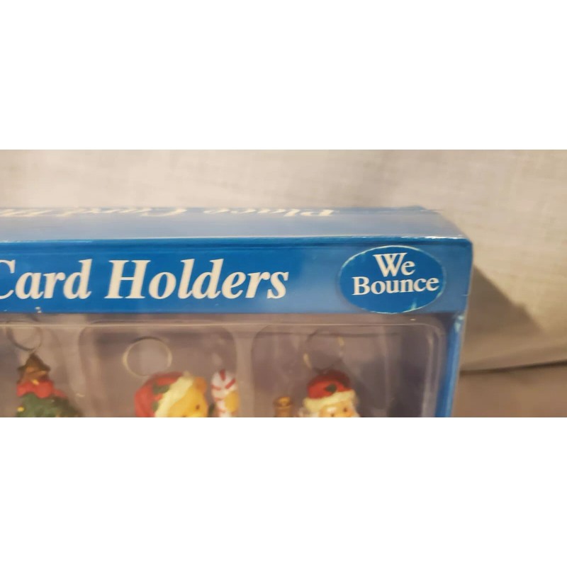 4pc SET Christmas Place Card Menu Holders Snowman Tree Bear Santa Bobbles Bounce includes cards. Refer to pictures for description.