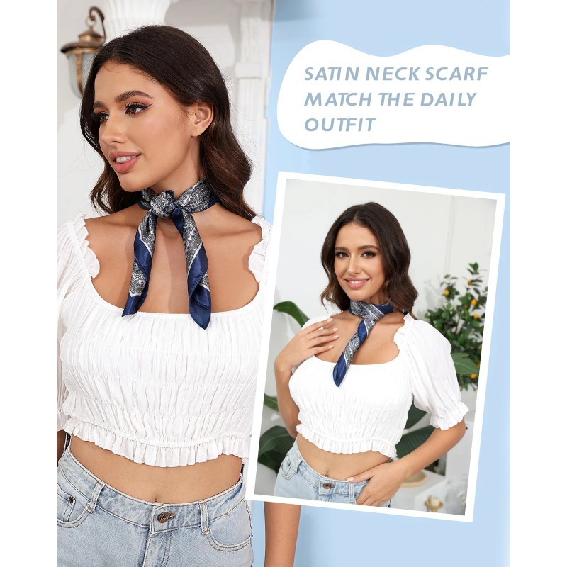 MULTIPLE WAYS TO WEAR - The unique and fashion hair bandanas can be used as neck scarf, head scarf, hair scarf, shawls, hair band, wear with hair scrunchies, wear with hair tie. This light and comfortable square is suitable for matching uniforms like flight attendants, bank staff, subway attendants, etc.