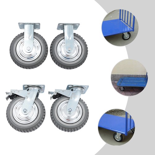 4PCS 8 inch Handling Wheels Anti-slip Fixed+Brake Solid Caster Wheels Heavy Duty