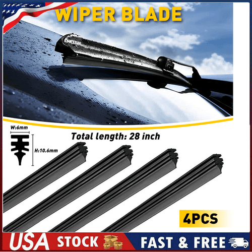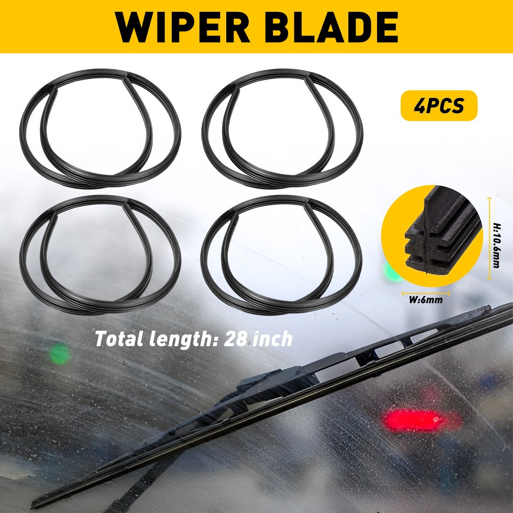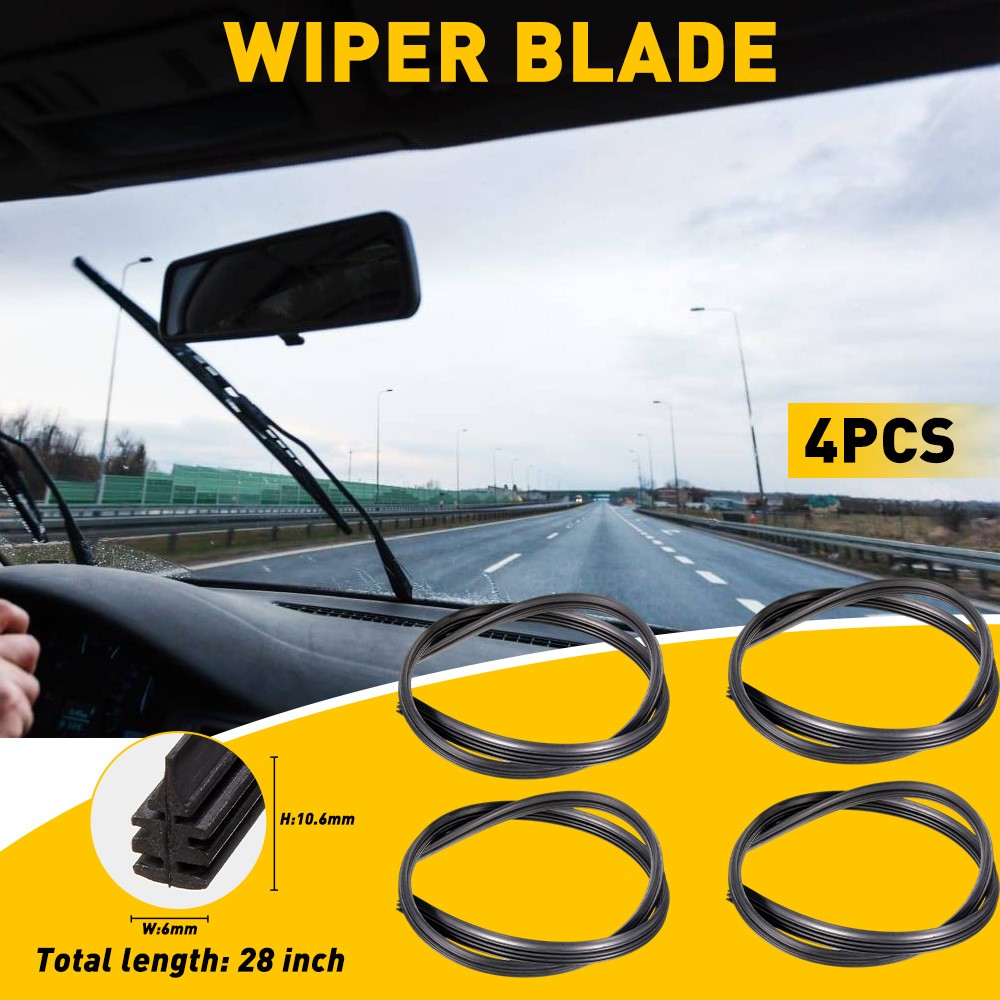 4Pcs Auto 28in Car Bus Rubber Frameless Windshield Wiper Blade Refills Universal