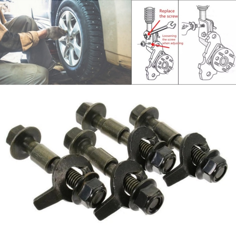 Camber Kit Cam Bolt, 4pcs 12mm Vehicles Steel Four Wheel Alignment Adjustable Camber Kit Cam Bolt