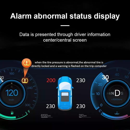 1.Monitors the indicators of each tire independently and transmits the real-time data,maintaining vehicle balance to ensure driving safety.