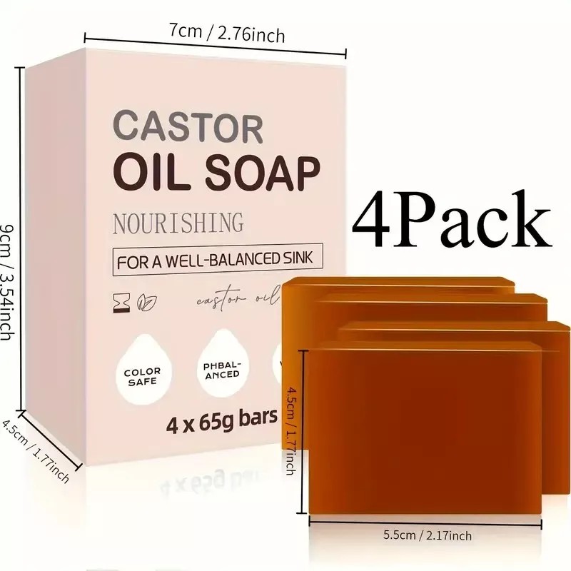 4pcs Nourishing Soap Bars - Castor Oil Enriched, Hydrates & Repairs Skin