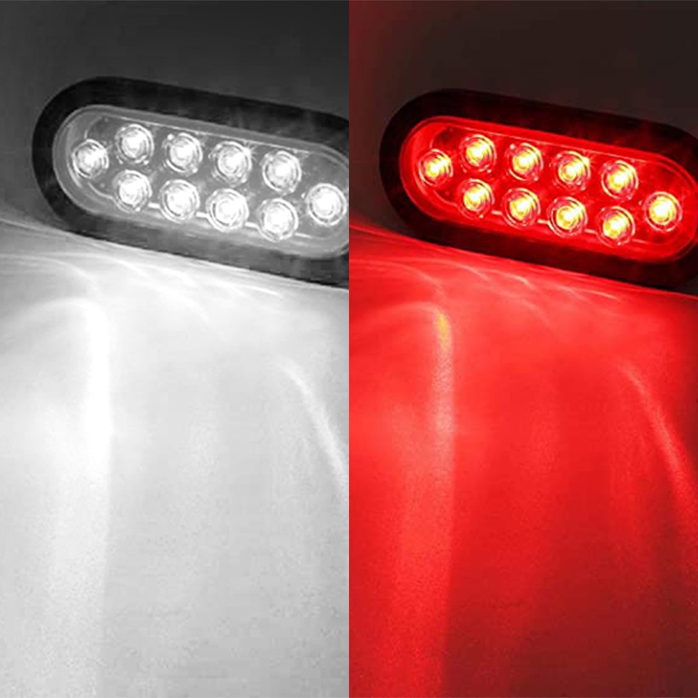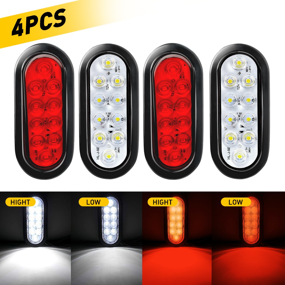 4x 10 LED Trailer Truck Sealed Reverse Tail Lights Back-Up 12V 6" Oval Red White