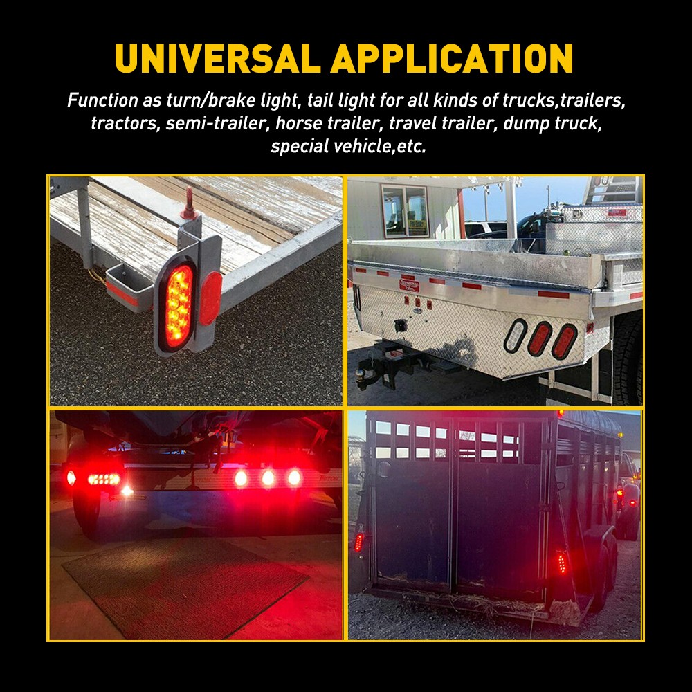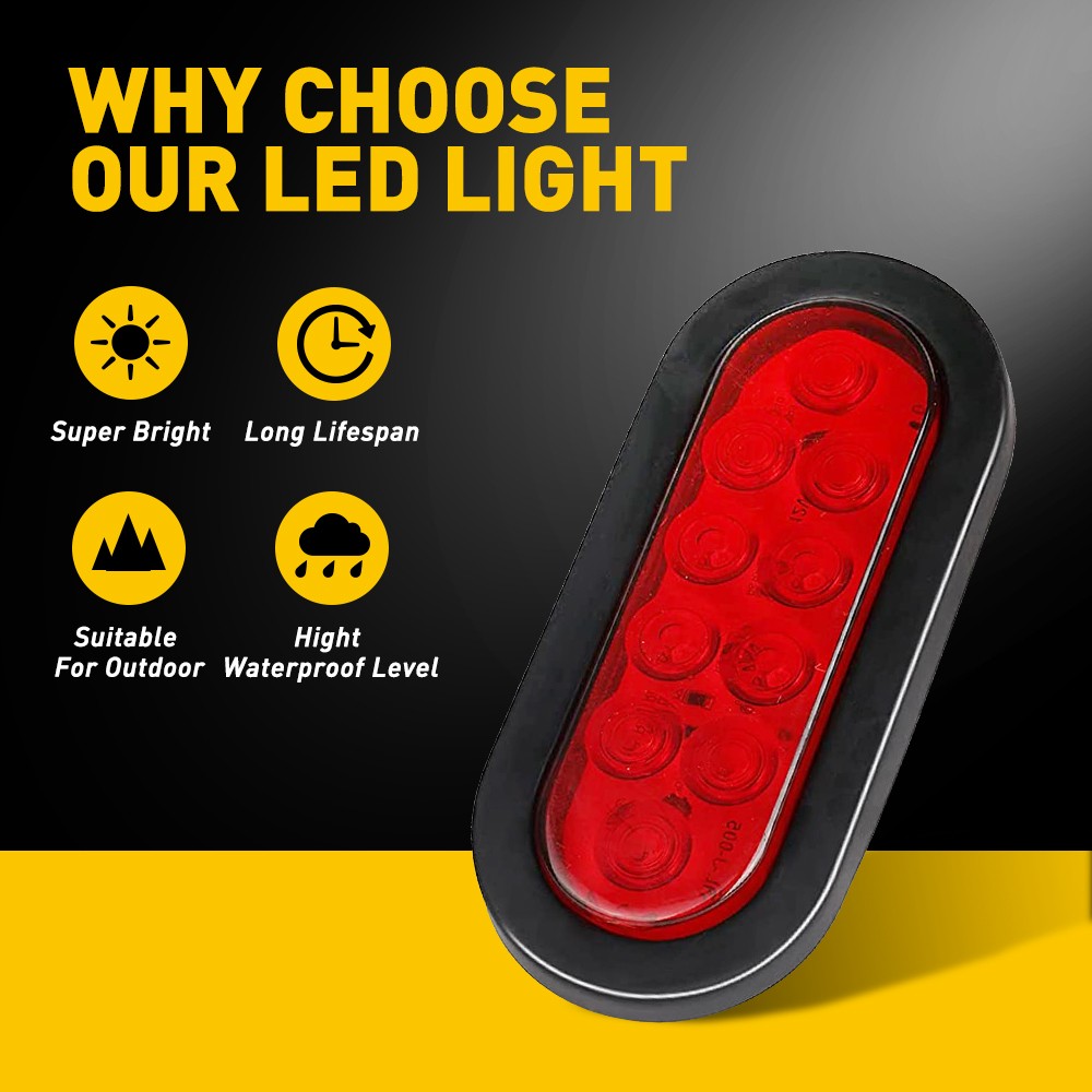 Features: *High brightness: Each led light has 10 high quality LEDs to output a super bright light, which sealed with a rubber grommet. *Superior material: Durable PC lens with rubber grommet housing welded together to ensure a permanent and water-proof seal. *Waterproof: The tail light is highly silicon sealed with an IP67 waterproof rating, which works even under extreme conditions such as rain and snow. *Easy to install: Come with rubber grommet & plug,drilling and hardwiring are not required *Wide application: Compatible for trucks, trailers, tractors, semi-trailer, Dump Truck, bus, boat, special vehicle, and etc. Fits for heavy duty trucks like Peterbilt, freightliner, international ,Kenworth, mack, and so on