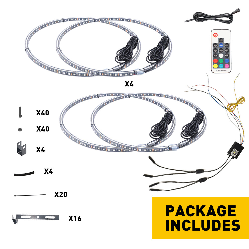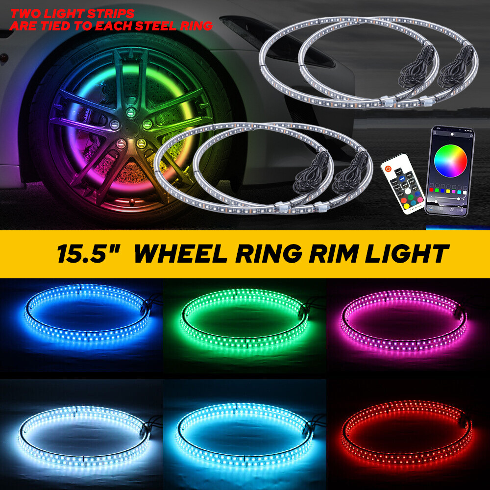 • 4x 15.5"LED Rim Light Double Row RGB Changing LED Wheel Ring Bluetooth APP Ctrl
