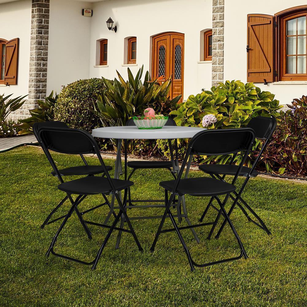 4x Plastic Folding Stackable Chair Garden Office Home Event Wedding Party Black