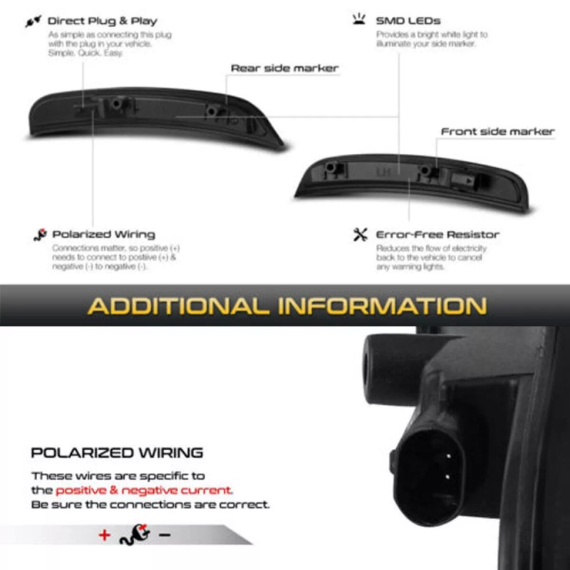 - Interchange Part Number: Rear Bumper Side Marker Light, 68214404AA, 68214405AA, 68214126AA, 68214127AA, Front Fender Side Marker Light, For Dodge Charger 2015-2022, Smoked Lens Side indicator White Lamp, Full LED Assembly Replacement Light Bulb Kit