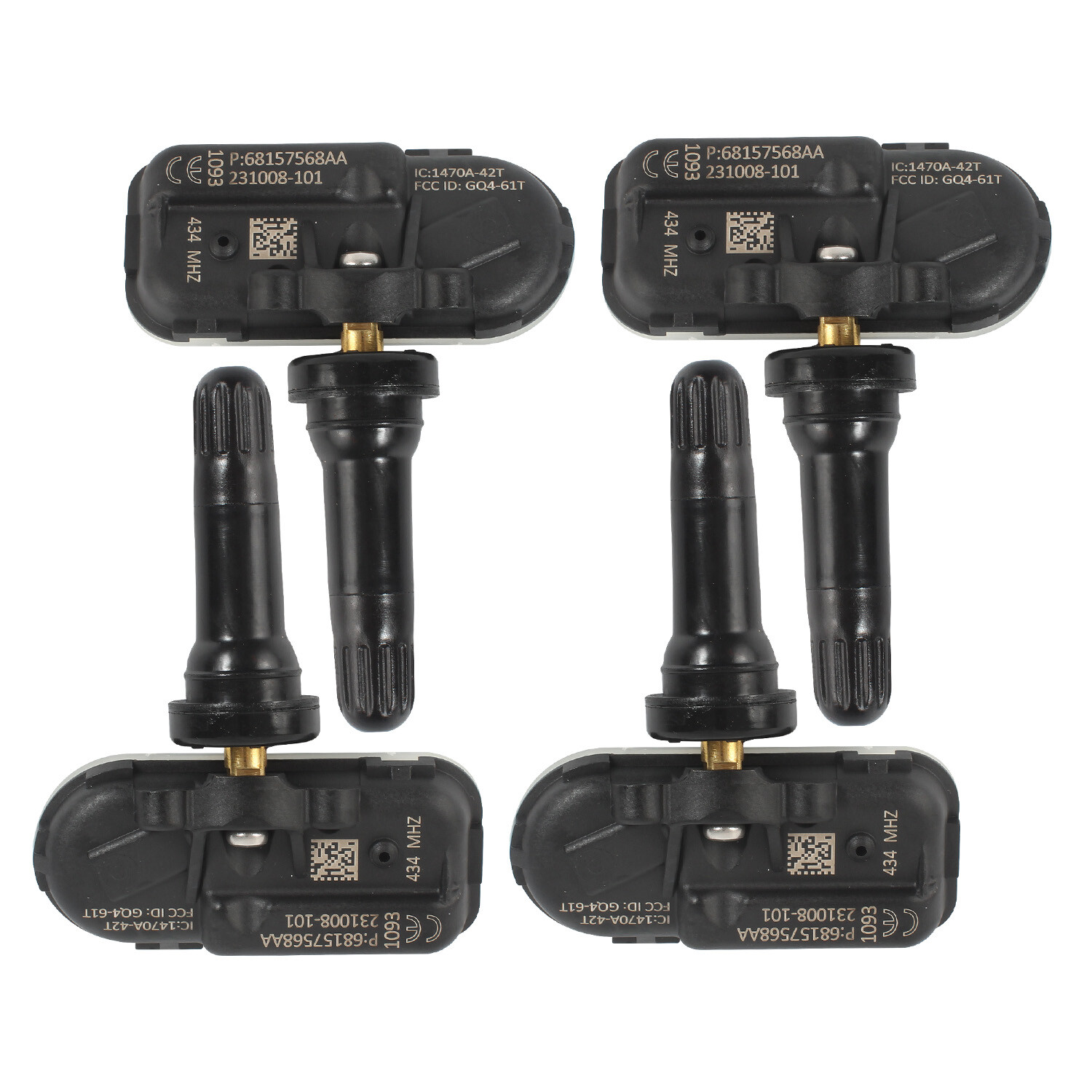 4x Tire Pressure Sensor TPMS 68157568AA For Dodge Ram 1500 2500 3500 Black