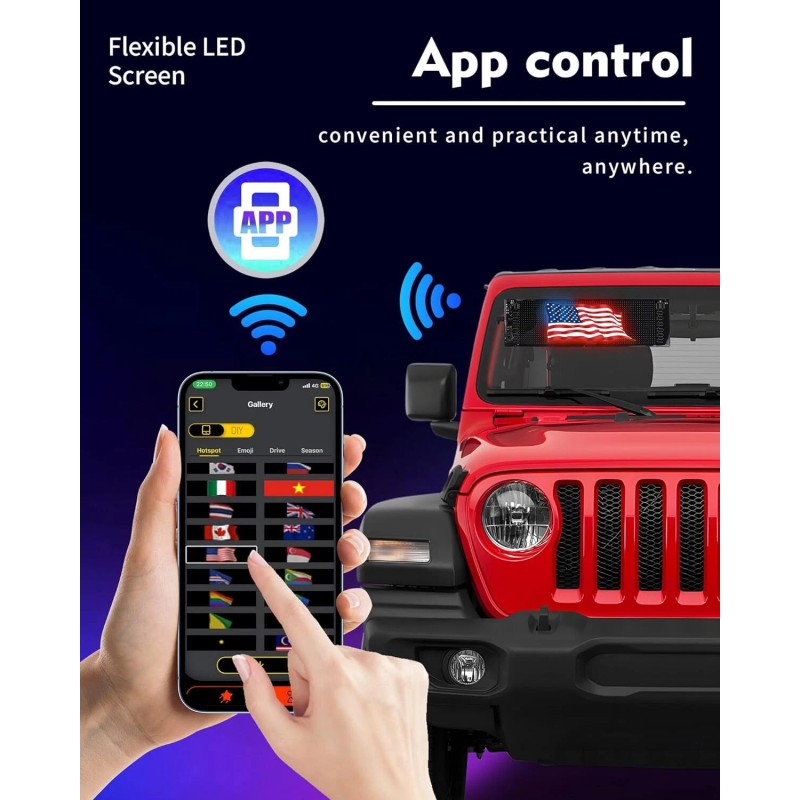 5V USB Car LED Display Screen with APP and Remote Turn heads with the Flexible Car LED Panel, a cutting-edge lighting accessory that will transform your vehicle into a rolling light show. Unlimited Customization via APP with Phone: Unlock all features for ultimate customization by seamlessly connecting via Bluetooth using the app on your Apple or Android device. Access free-draw, upload your own designed images or GIFs, and browse a library of user-generated content.