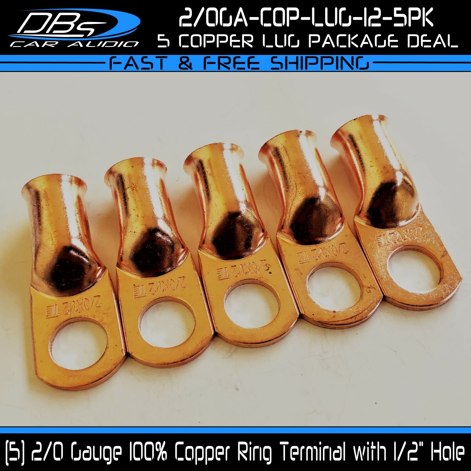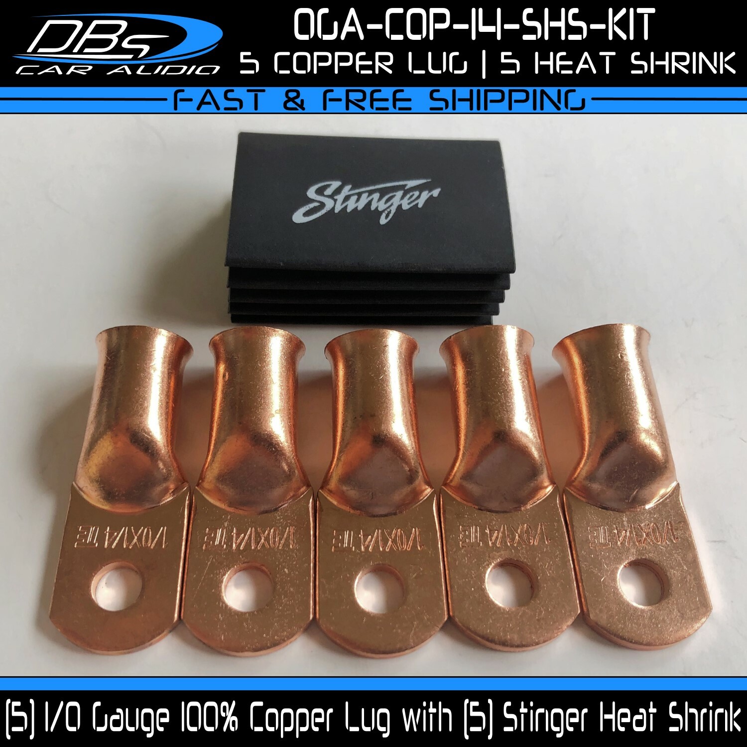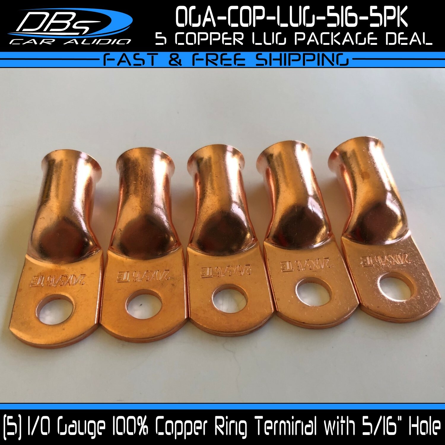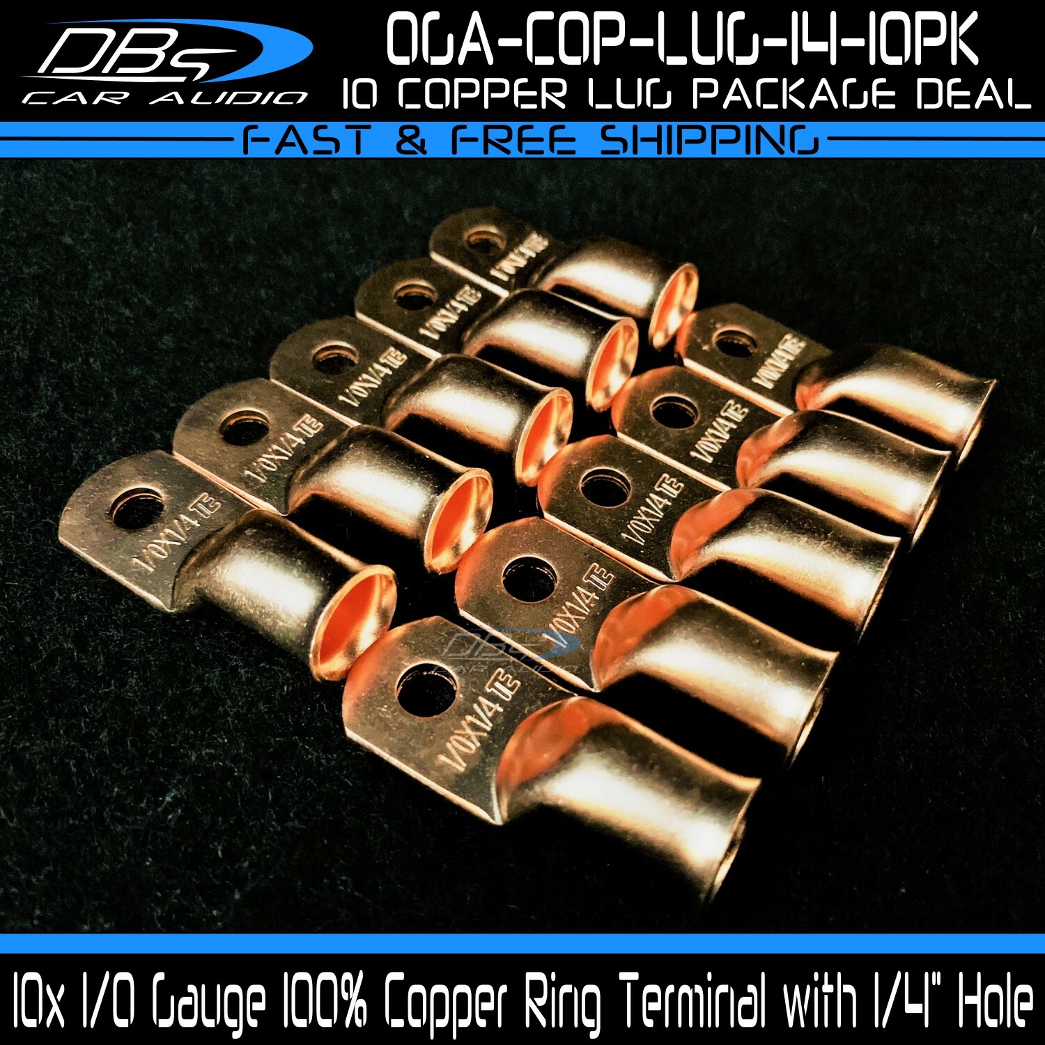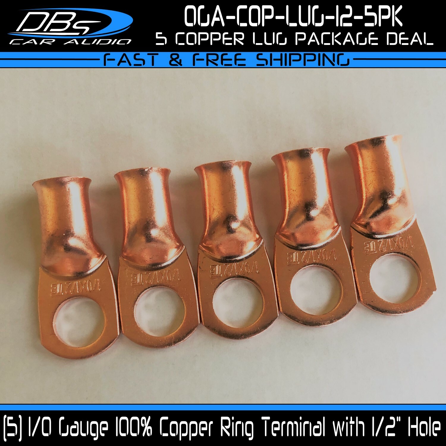 This set includes 5 high-quality 1/0 gauge copper ring terminals with 1/4" stud hole. They are universal connectors made of pure copper, heat tested for superior electrical contact. Perfect for battery wire connection.
