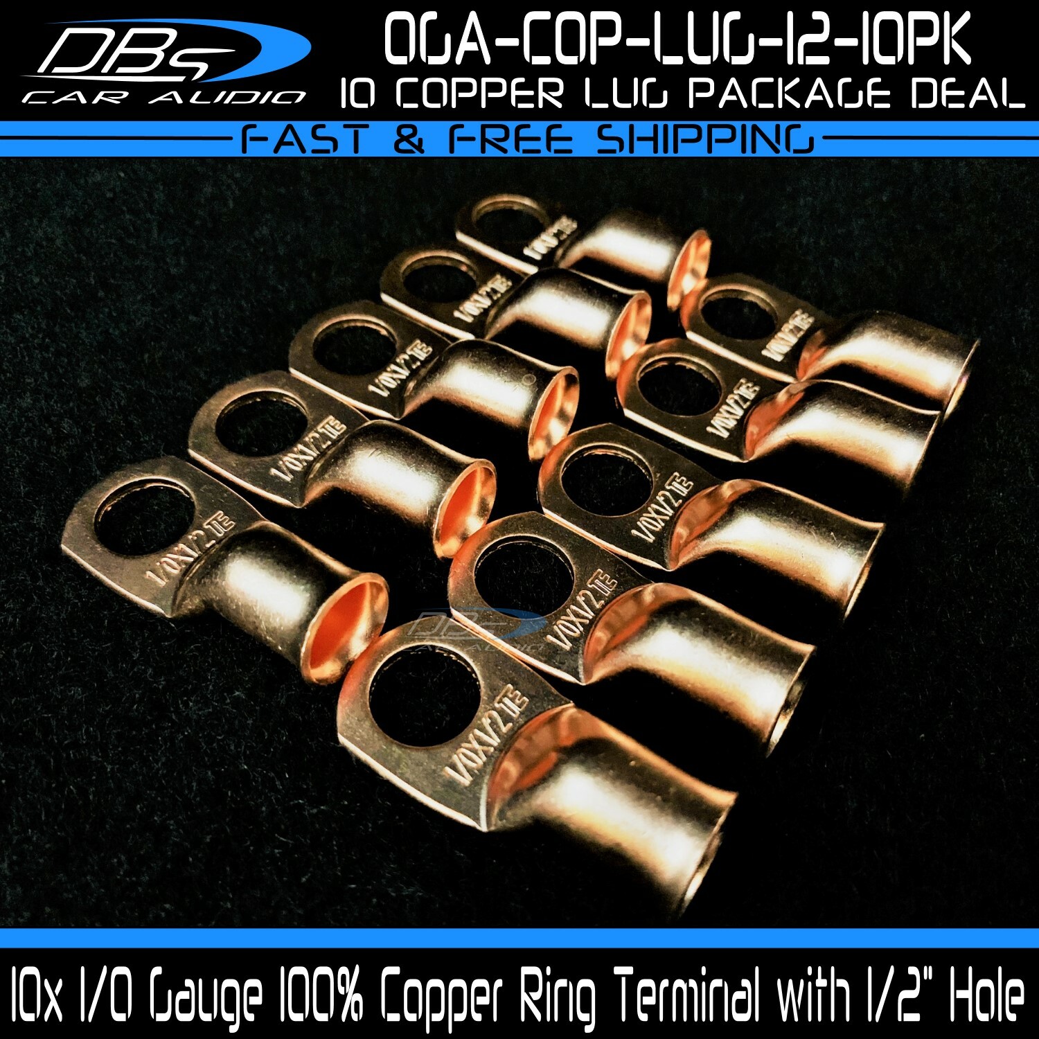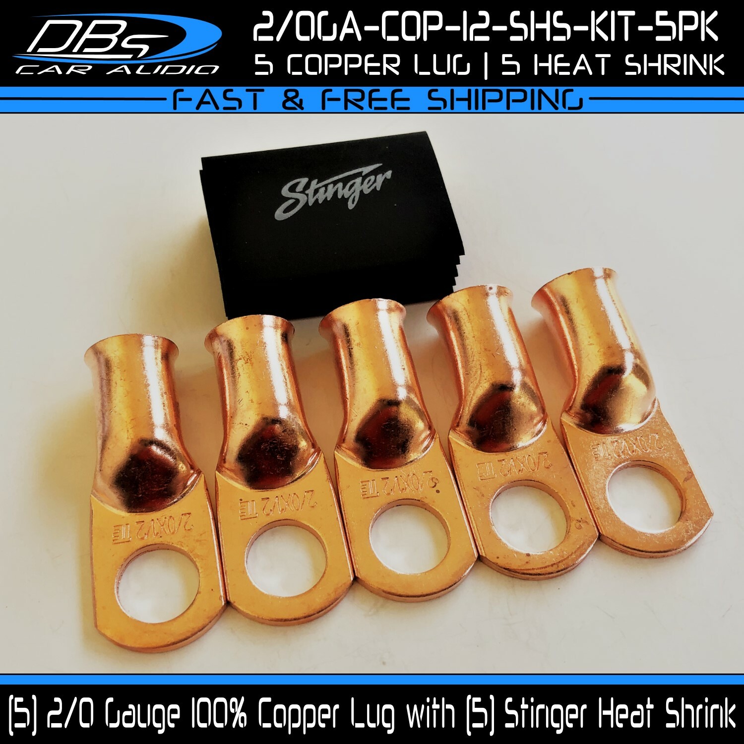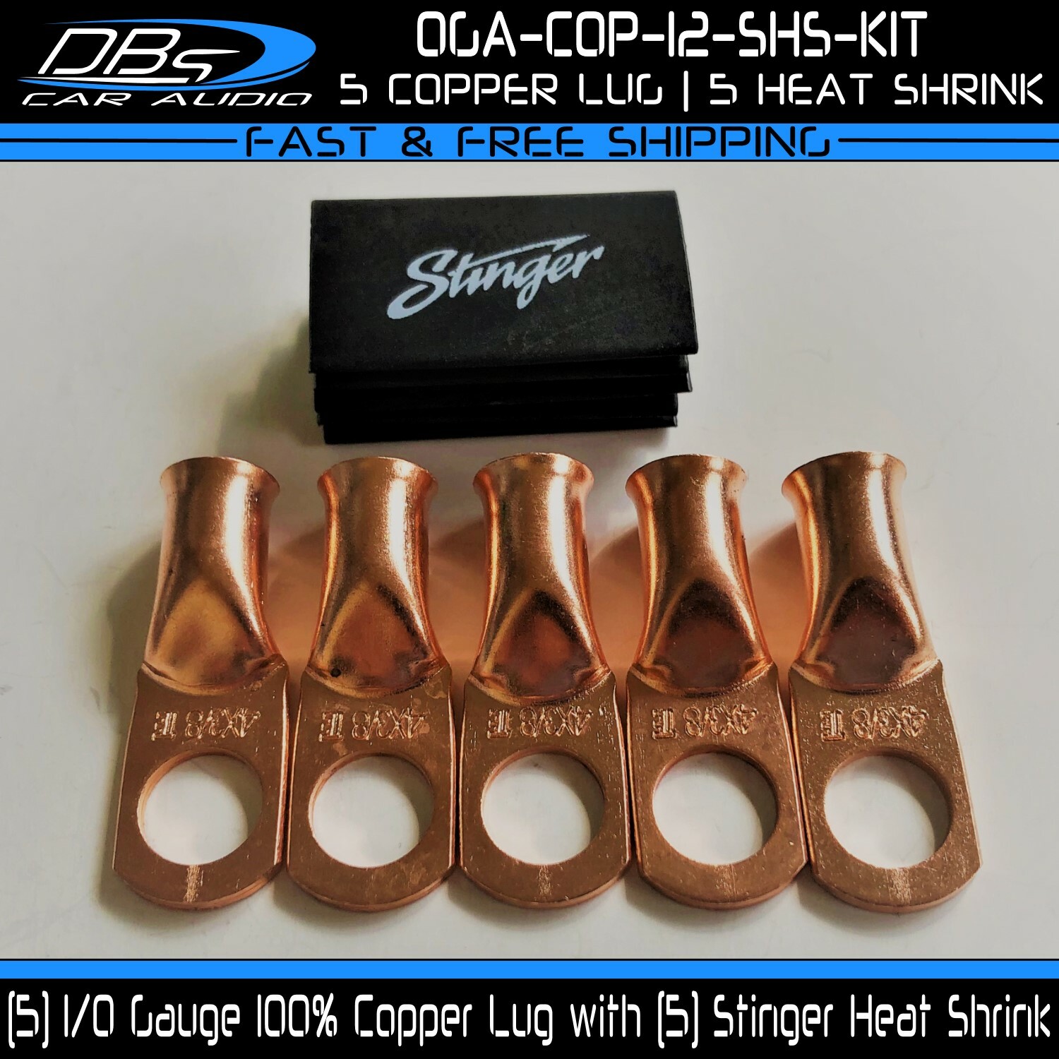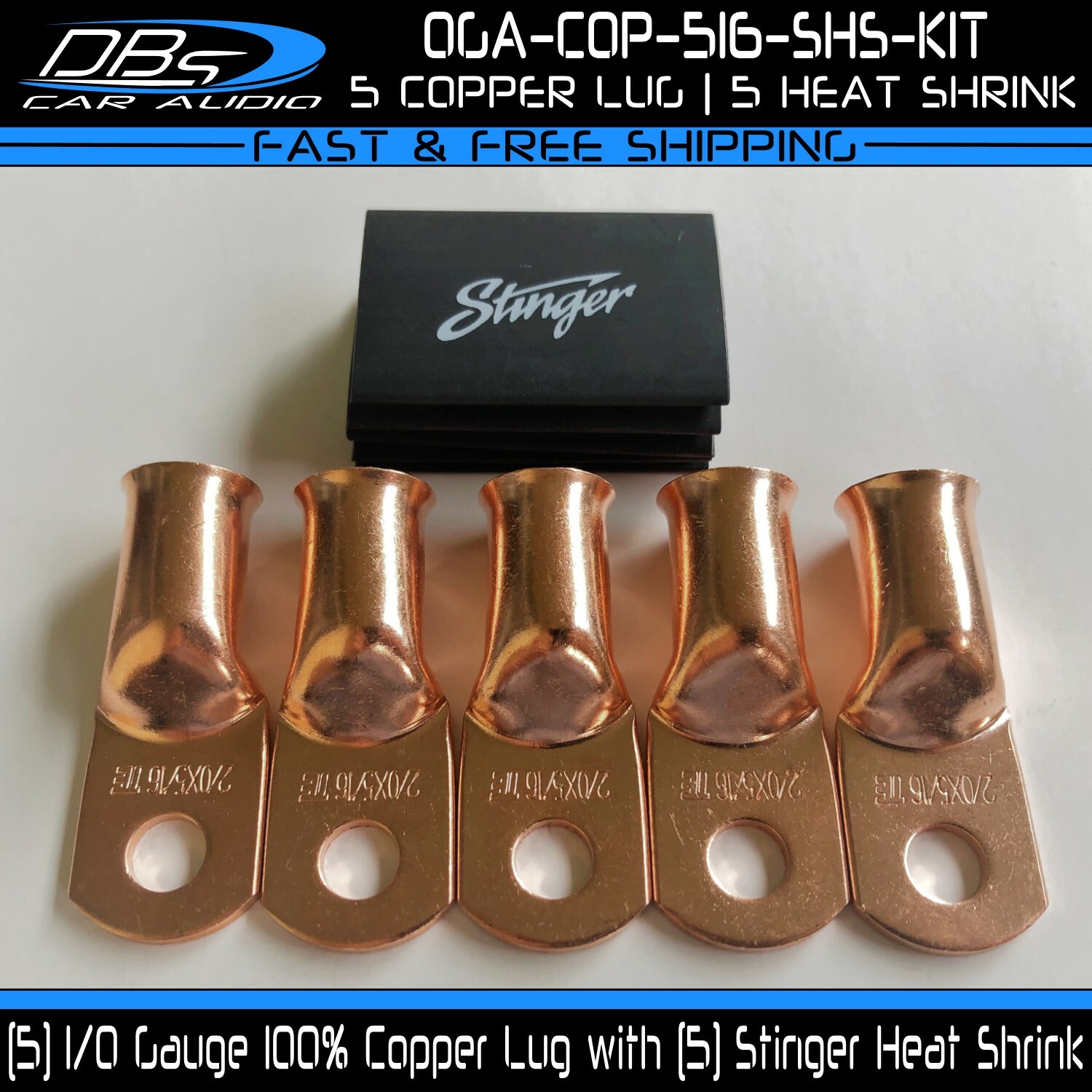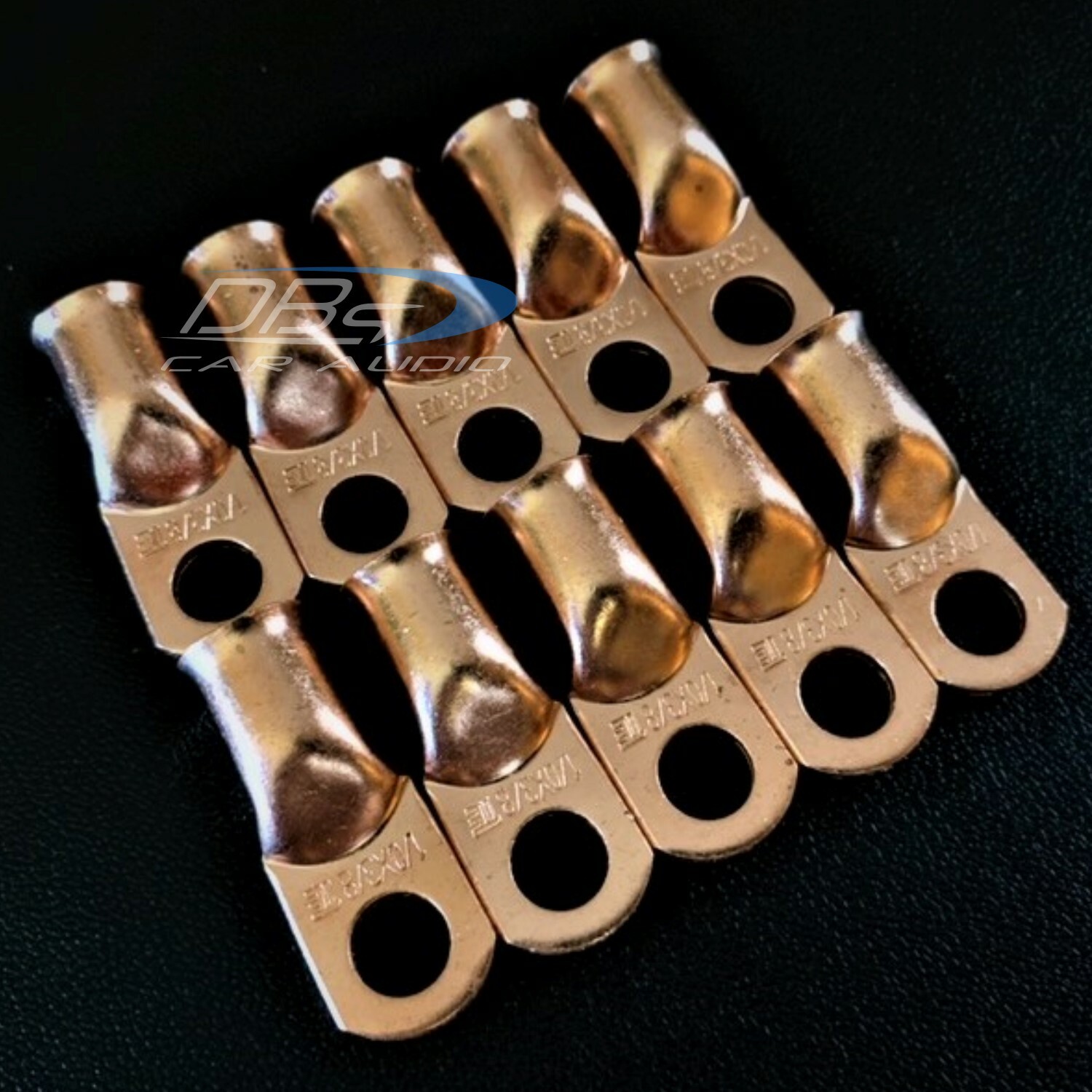 This set includes 5 high-quality 1/0 gauge copper ring terminals with 1/4" stud hole. They are universal connectors made of pure copper, heat tested for superior electrical contact. Perfect for battery wire connection.