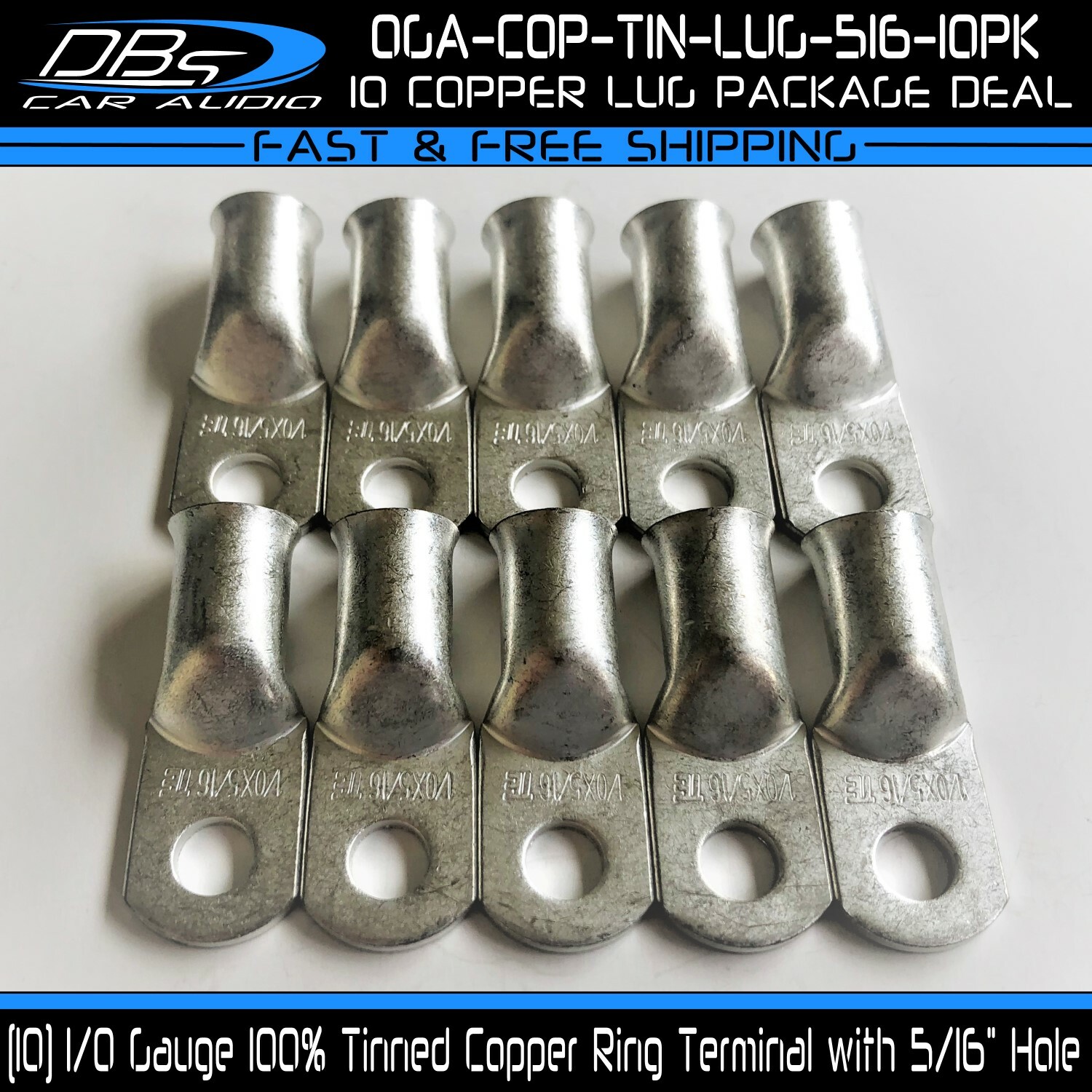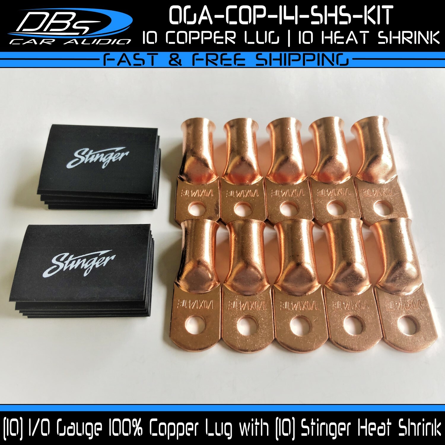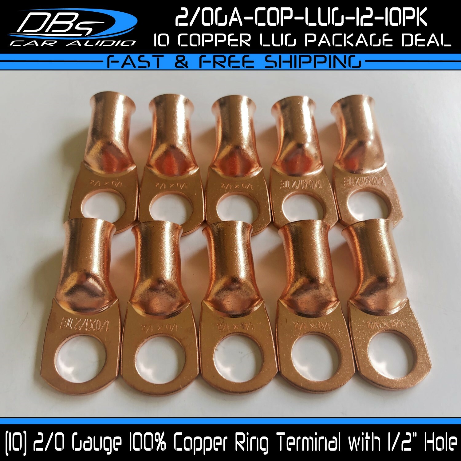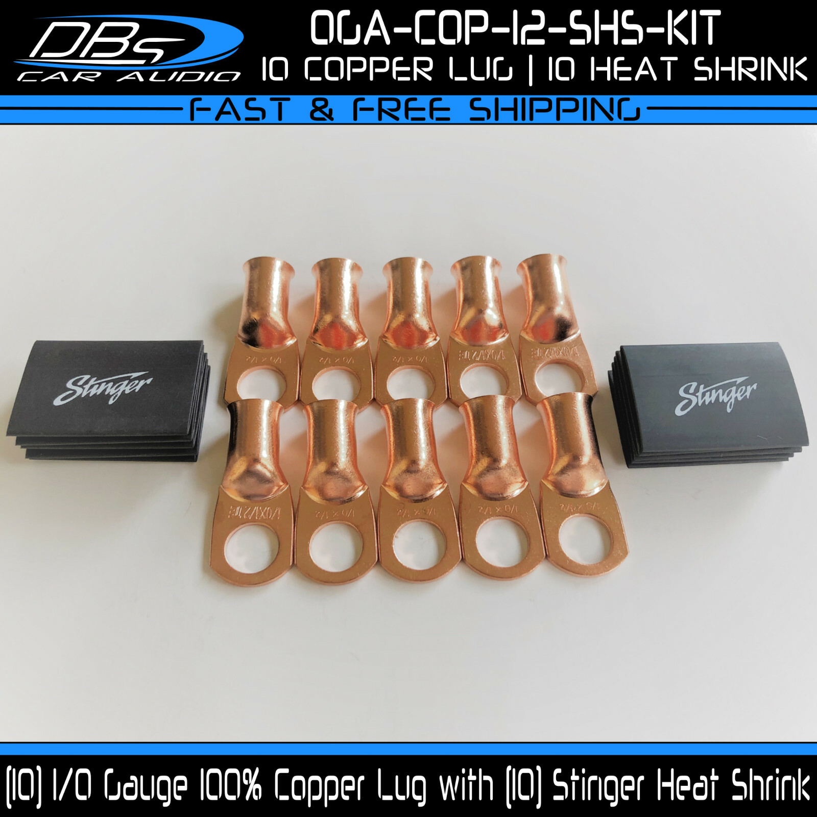 This set includes 5 high-quality 1/0 gauge copper ring terminals with 1/4" stud hole. They are universal connectors made of pure copper, heat tested for superior electrical contact. Perfect for battery wire connection.