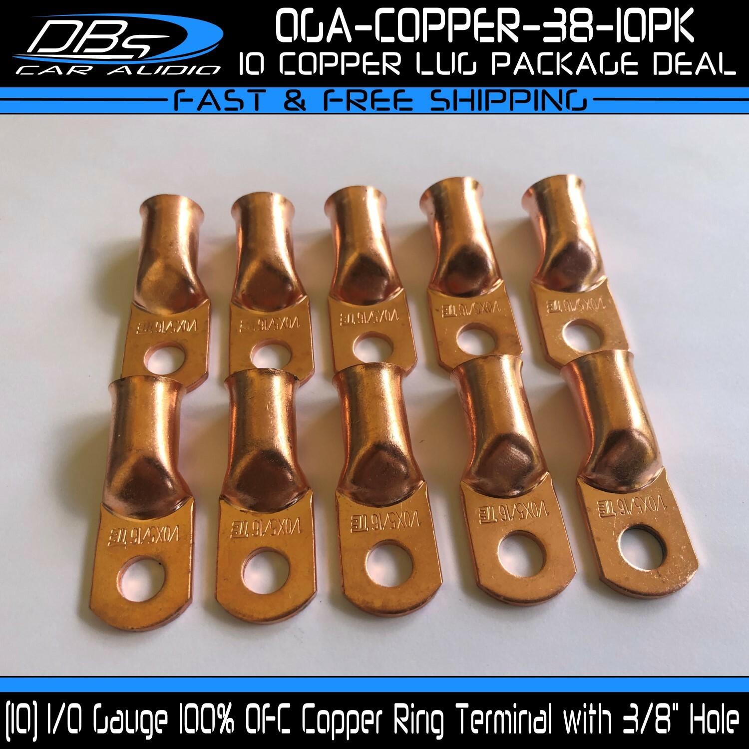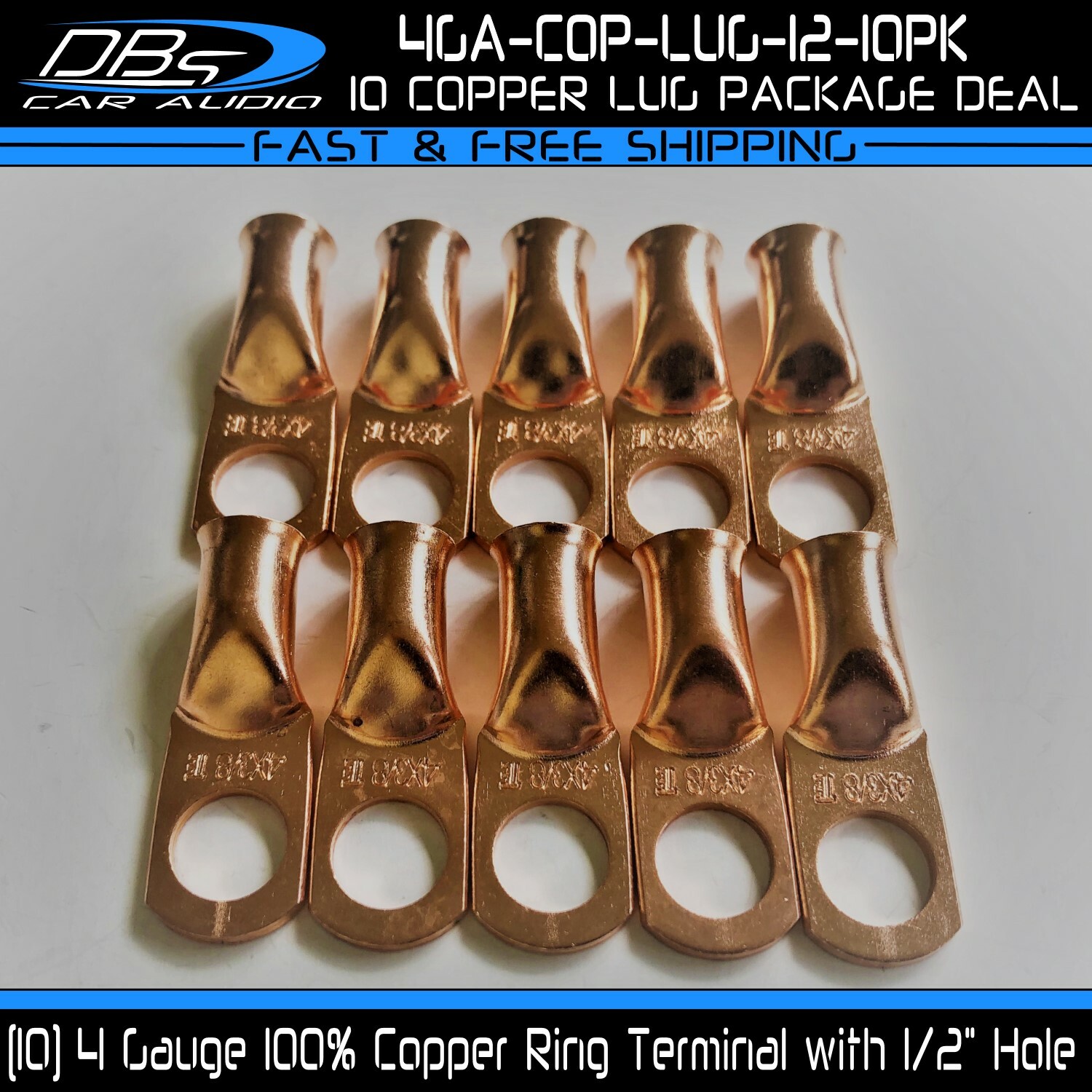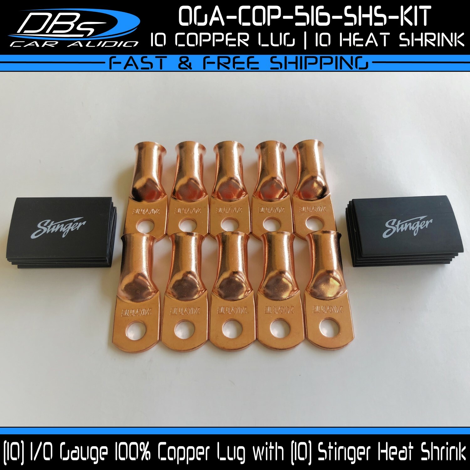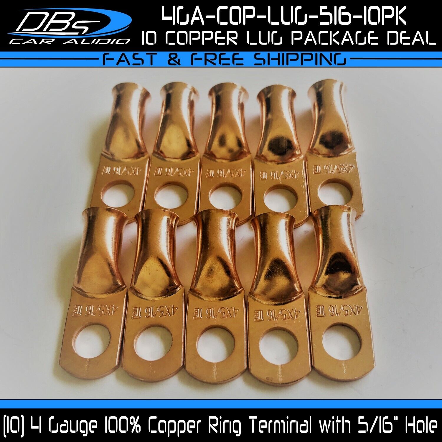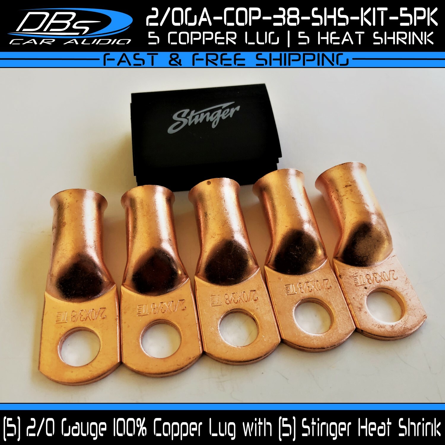 This set includes 5 high-quality 1/0 gauge copper ring terminals with 1/4" stud hole. They are universal connectors made of pure copper, heat tested for superior electrical contact. Perfect for battery wire connection.