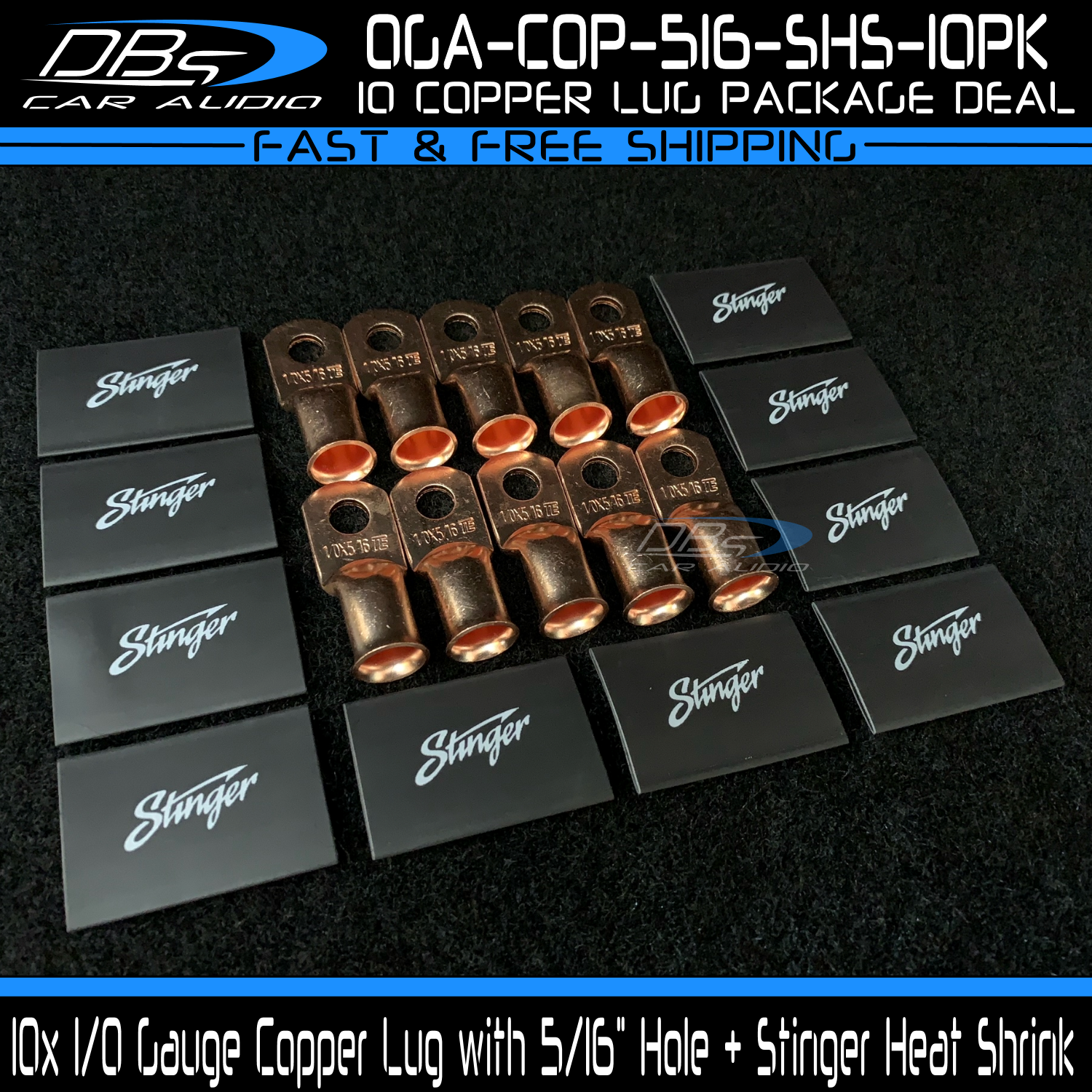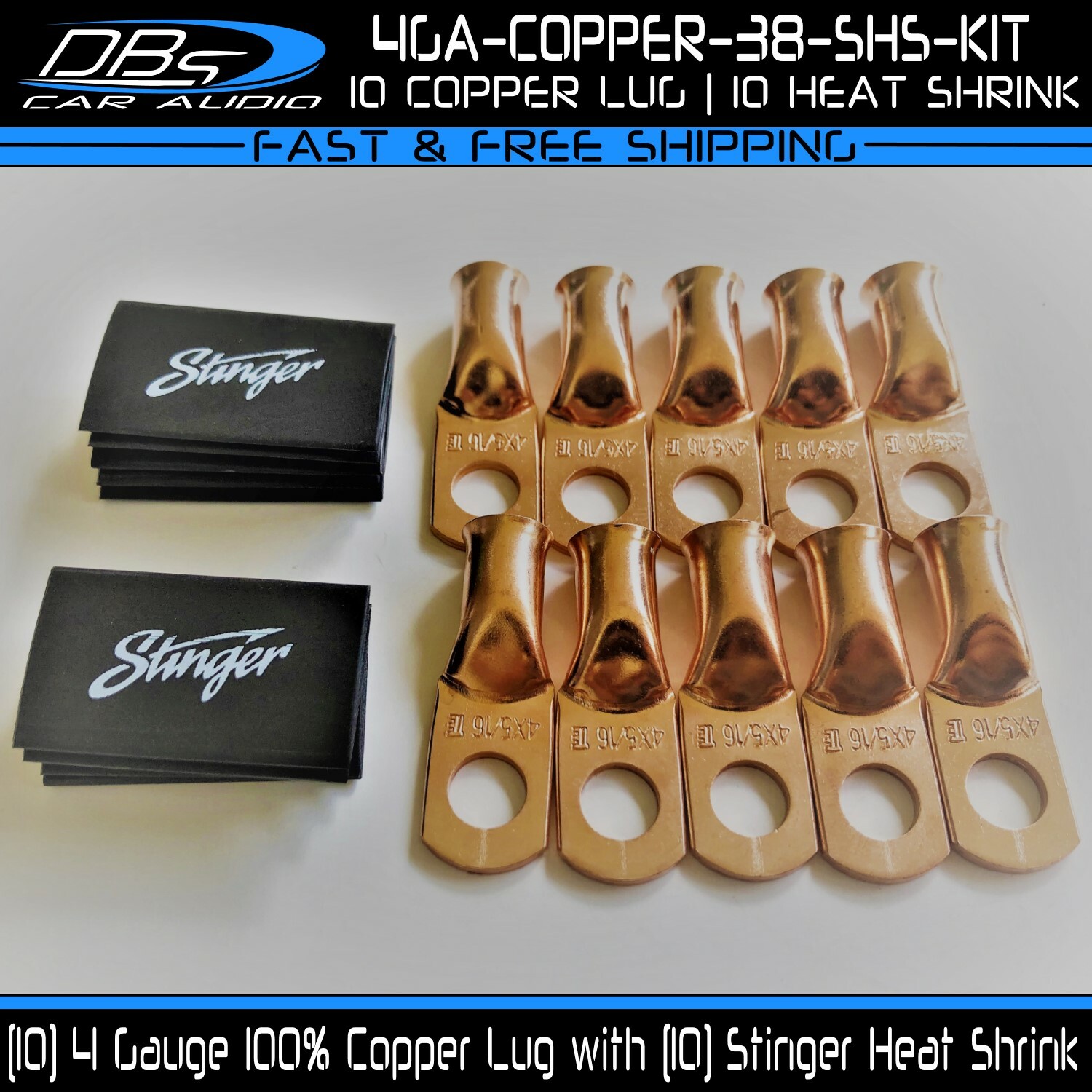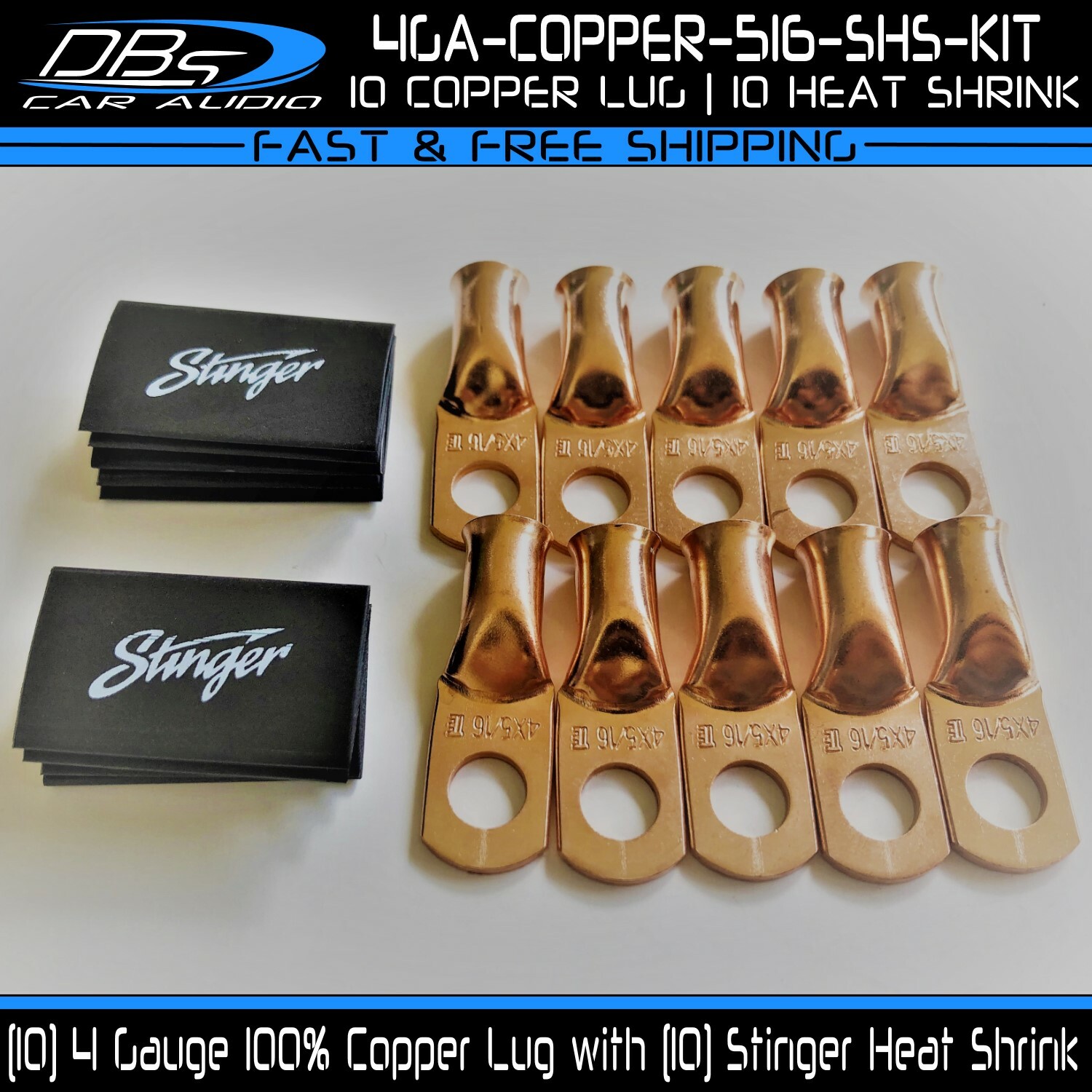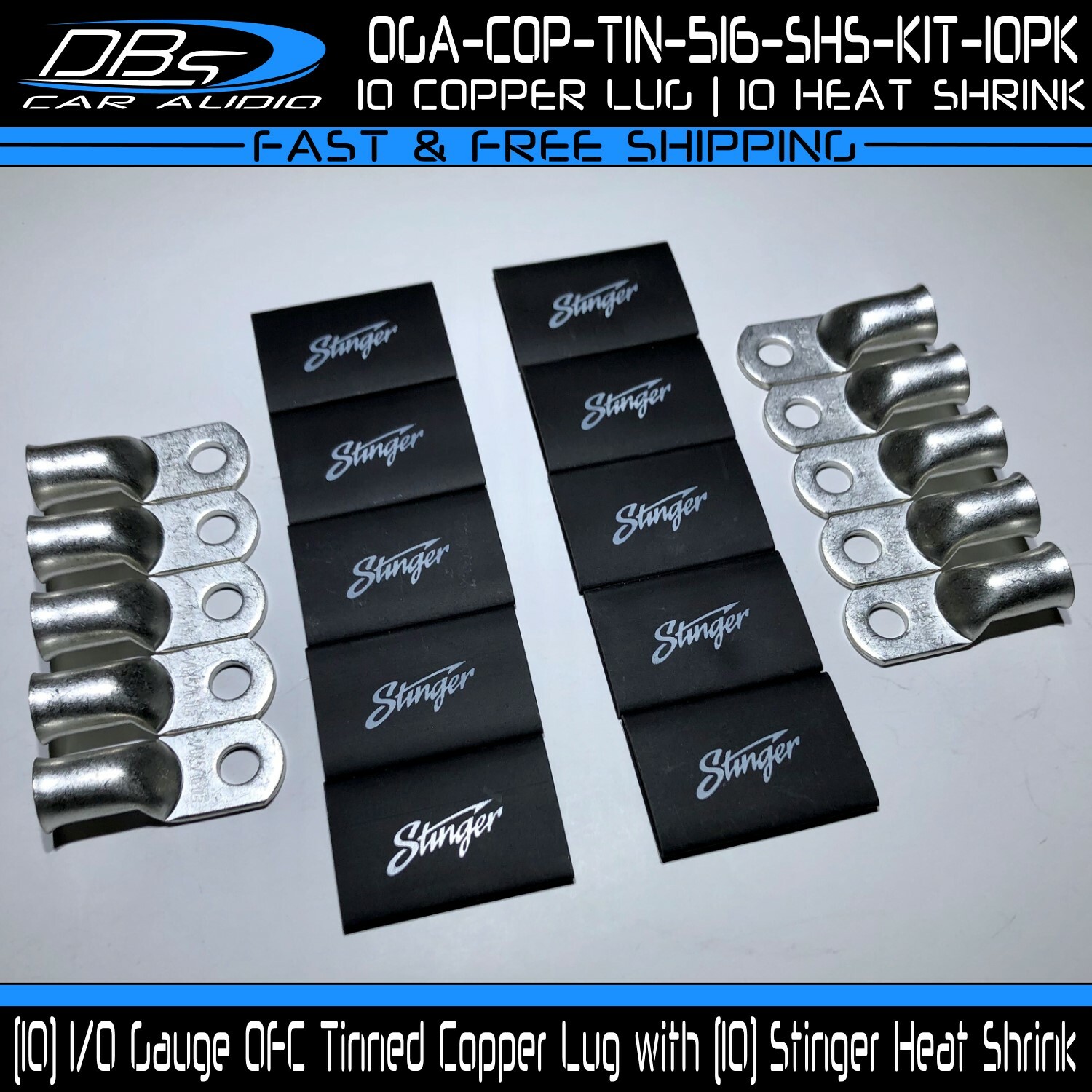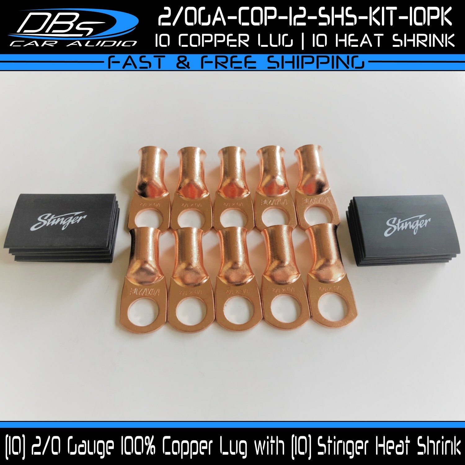 This set includes 5 high-quality 1/0 gauge copper ring terminals with 1/4" stud hole. They are universal connectors made of pure copper, heat tested for superior electrical contact. Perfect for battery wire connection.