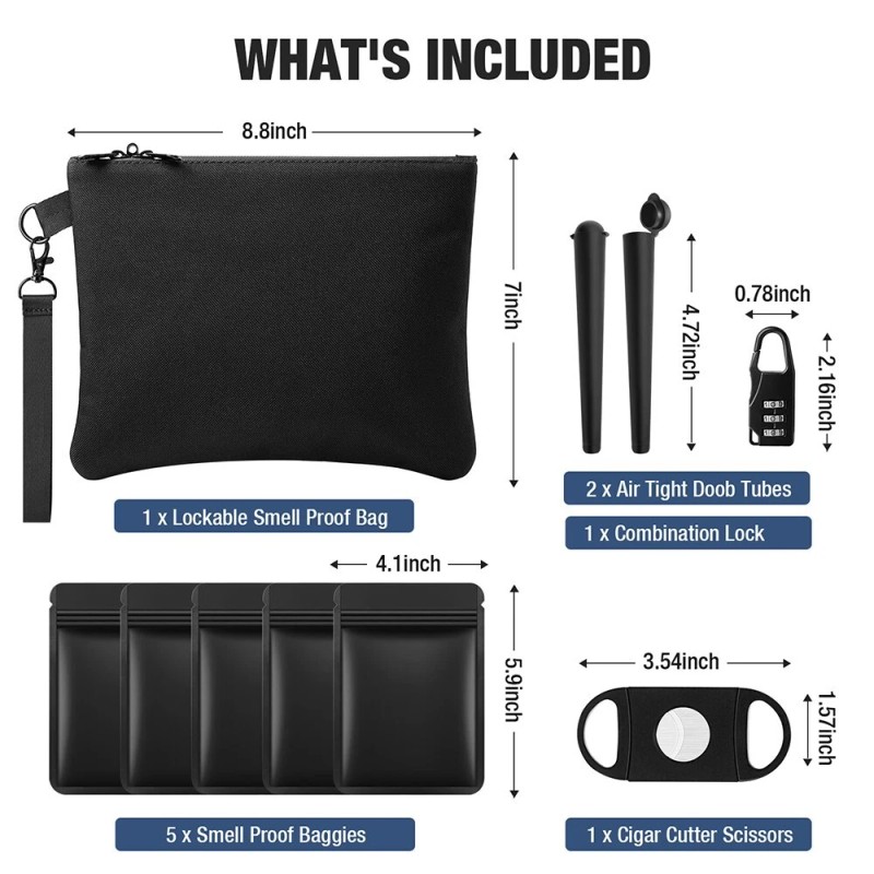 Unbranded 5-Layer Deodorant Bag Set(5 Frosted Self-sealing Bags+Cigar Cutter+Conical Tube)