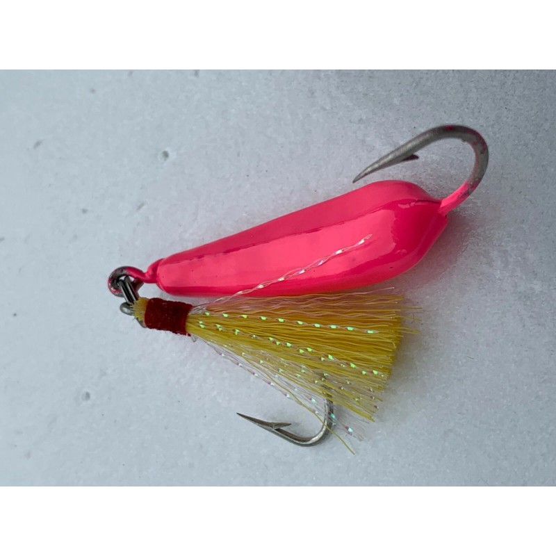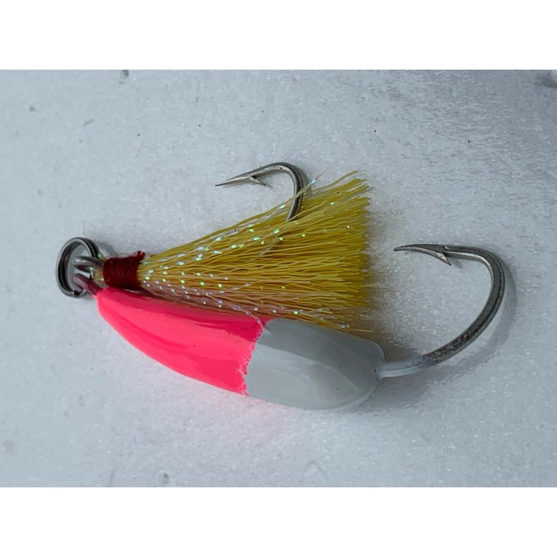 Unbranded 5 Pack Pompano Goofy Silly Jigs w/ Teaser 3/4oz Pre-ringed Color Choices - Green/white w/ pink teaser