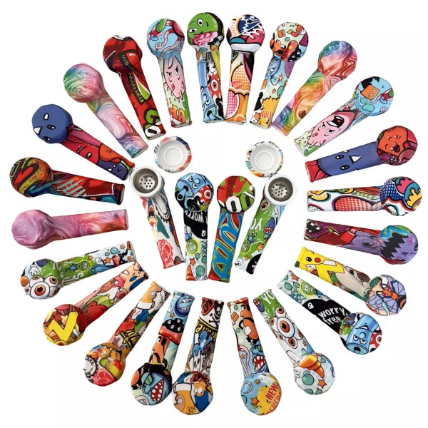 Order now and enjoy a fun, colorful, and high-quality smoking experience with this printed silicone pipe set!