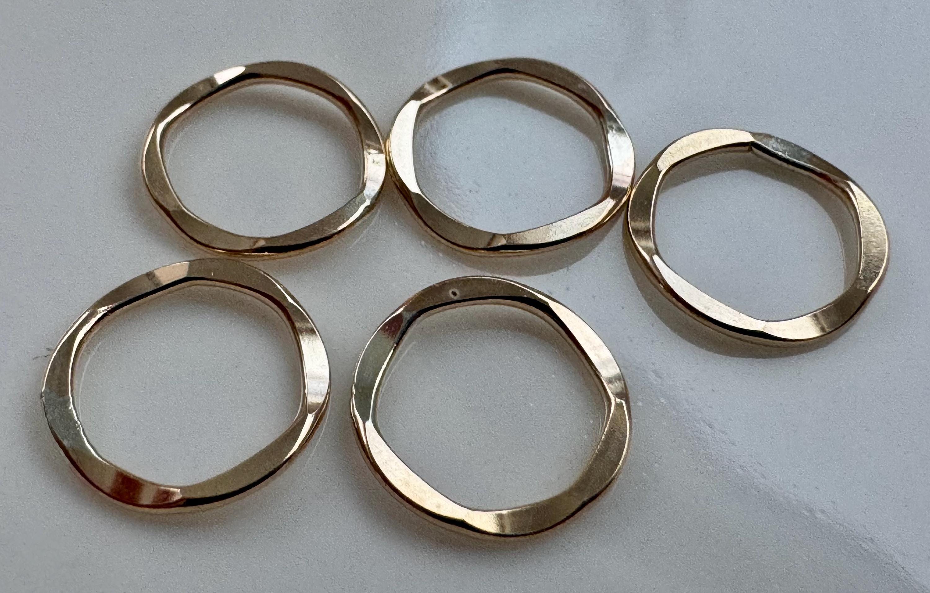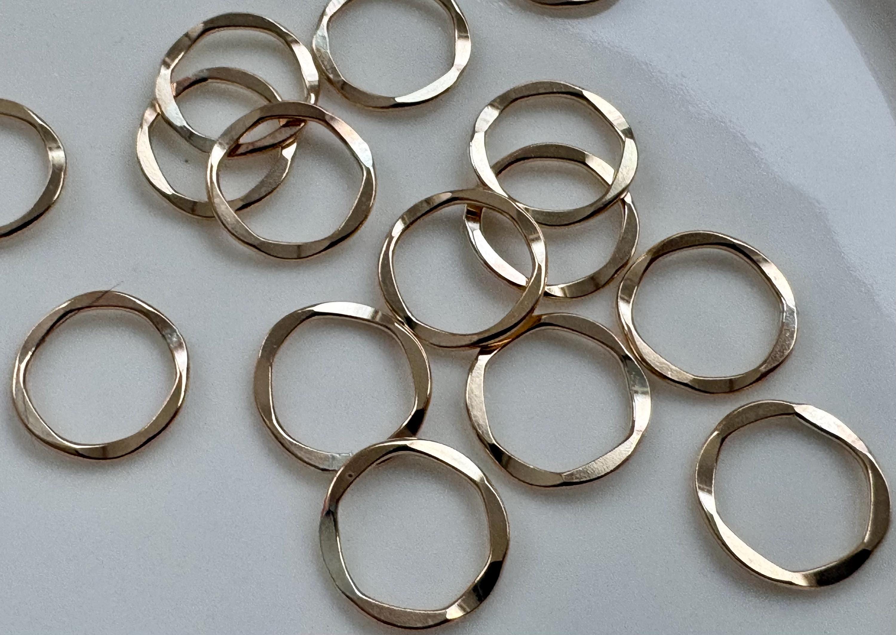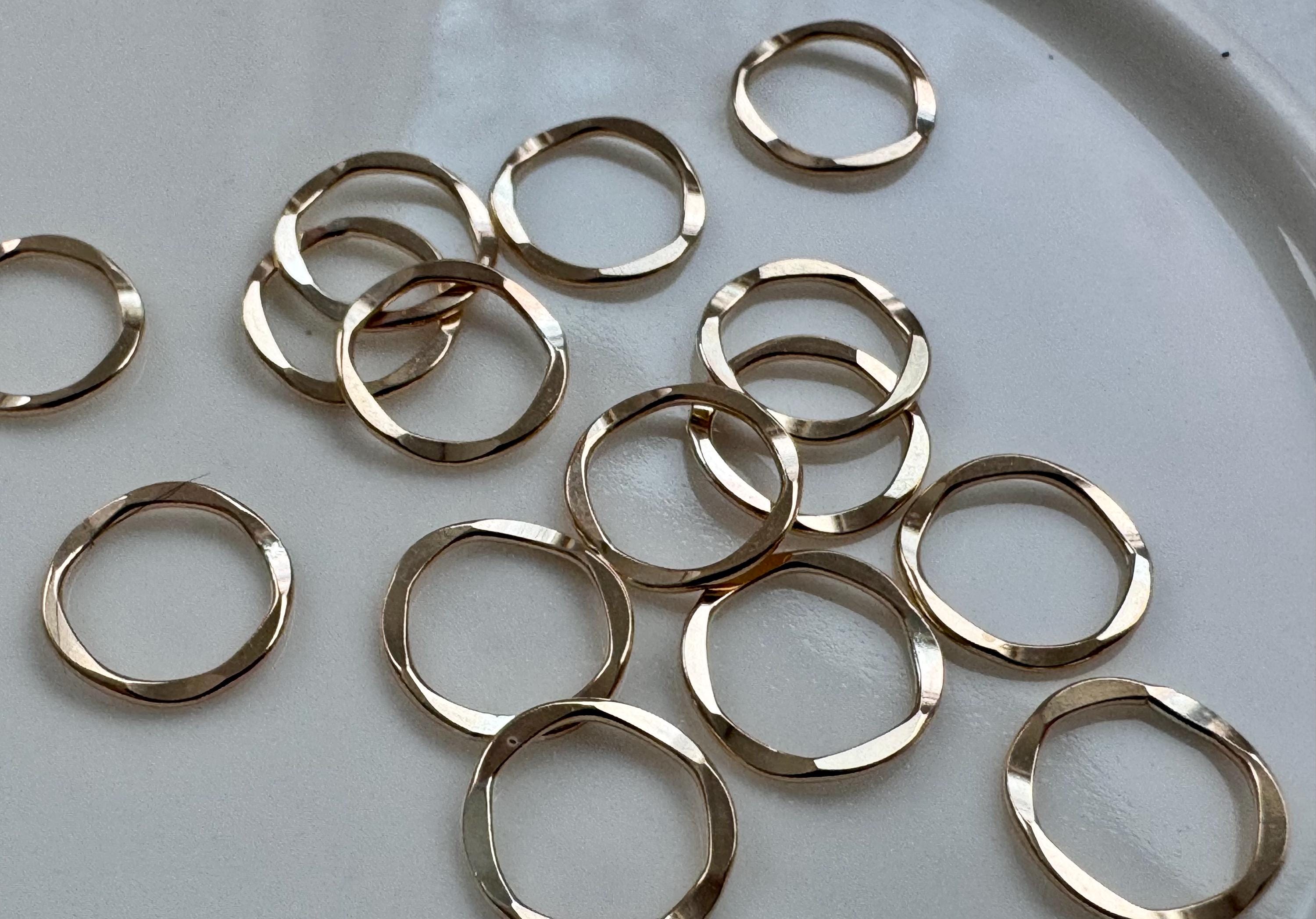 5 pcs- 11mm Hammered Closed Ring Charm Yellow Gold Filled 14K (C2636F)