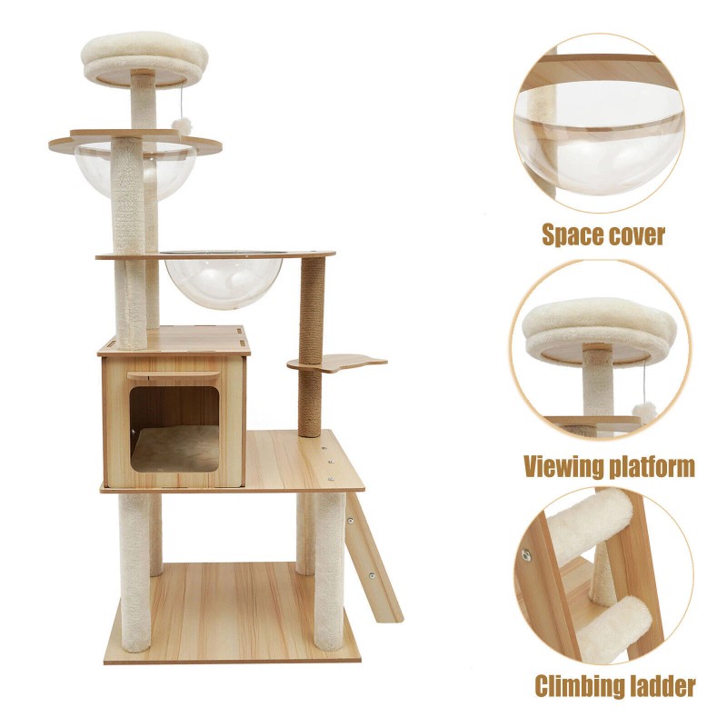 Carefully Designed: the Acrylic Space Capsules with High Transmittance and a Concave Design That Allows You to View Your Cat Fully and Lets Cats See the Scenery Outside. in Addition, It Can Satisfy the Habit of Cats Curling up to Sleep and Better Protect Their Spine.