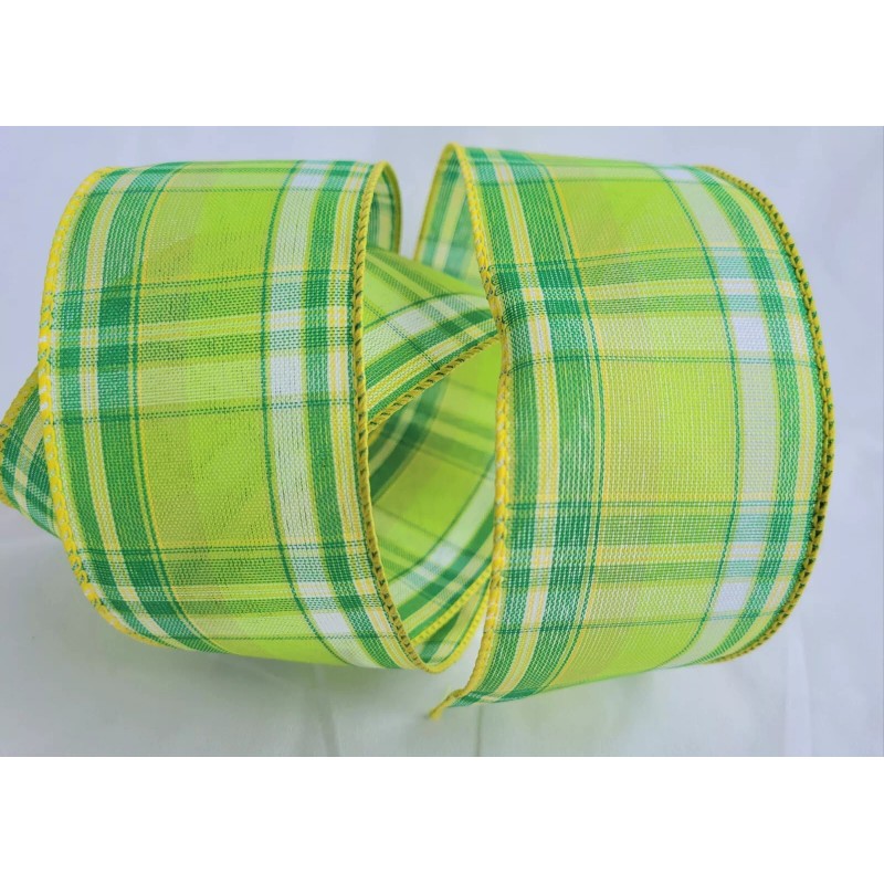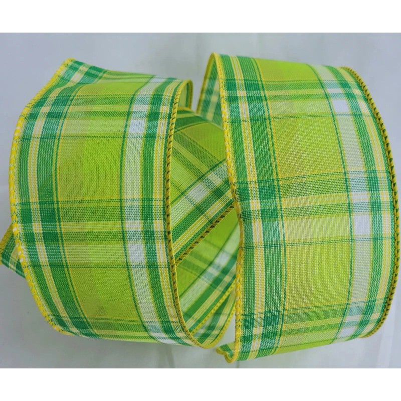 Unbranded 5 YARDS 2 1/2" WIDE WIRED EDGE RIBBON GREEN & WHITE PLAID ST PAT'S DAY SPRING