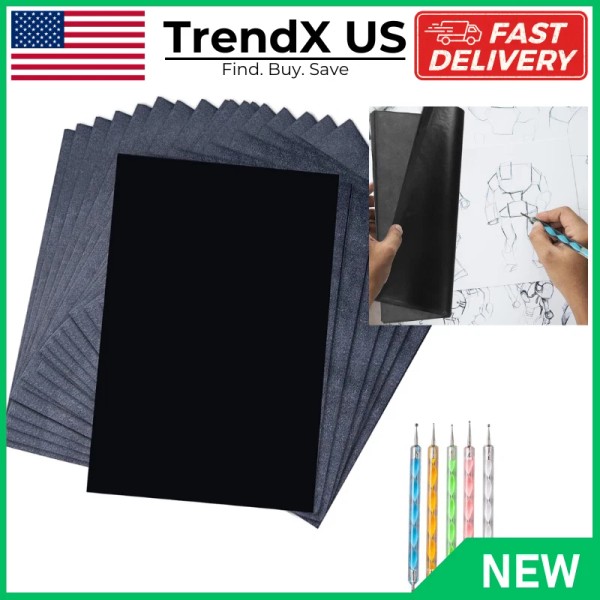 - Package includes: 50 sheets 11.8" x 8.3" black carbon papers and 5 pieces 5.2 inches long double ended tracing stylus dotting tools, the top ball diameter ranges of stylus from 0.03 to 0.12 in; they almost satisfy all your needs during using and makes creating designs so much easier