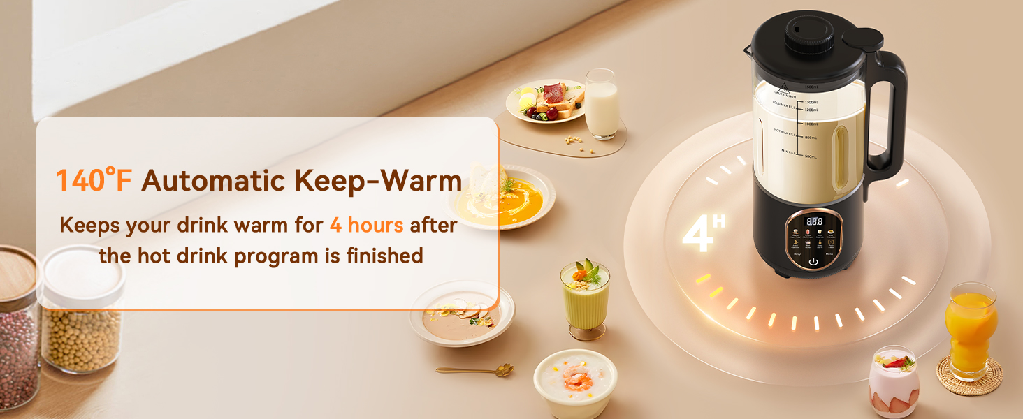 With a simple and intuitive interface, the soymilk machine maker is easy to use for both beginners and experienced chefs. Simply select the function mode, press start and let it do the work for you. With an easy-to-use screen and visual glass design, you'll achieve perfect results every time. It also beeps when the programme is over, so you don't have to keep an eye on it