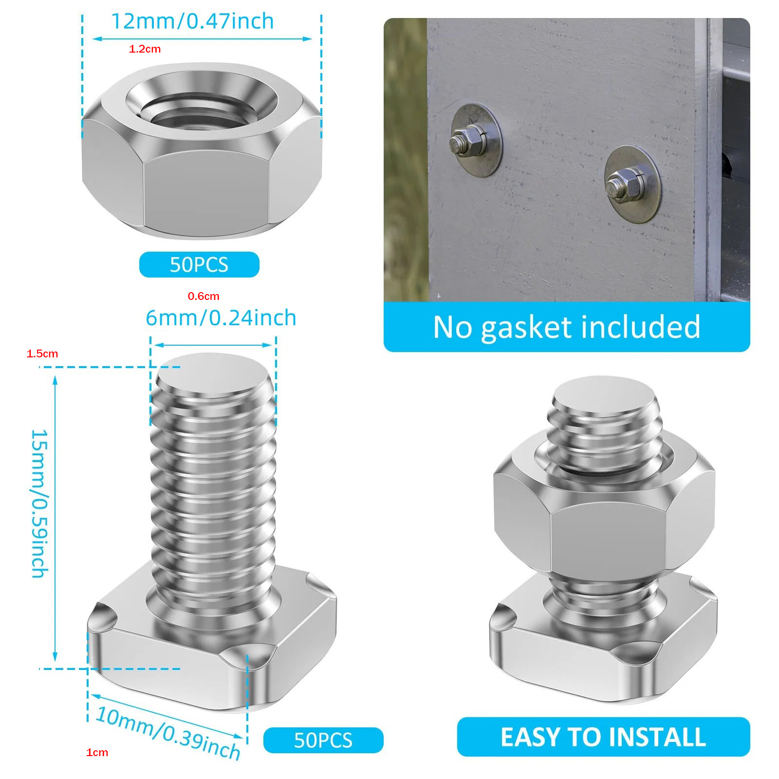 Unbranded 50Pcs Greenhouse Bolts & Nuts Tool Accessory Set Repair Kit Replacement 12mm