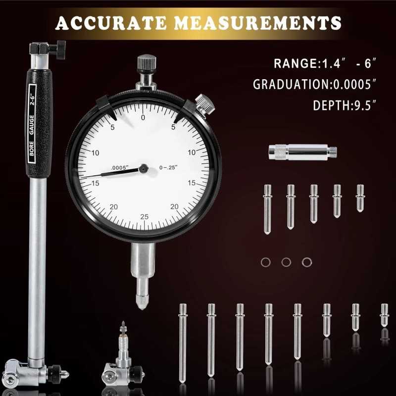 The dial bore gage anvils are made of high quality carbide, extending wear time and improves wear resistance. Hole gauges are easily adjustable and self-centering for fast, accurate measurements.