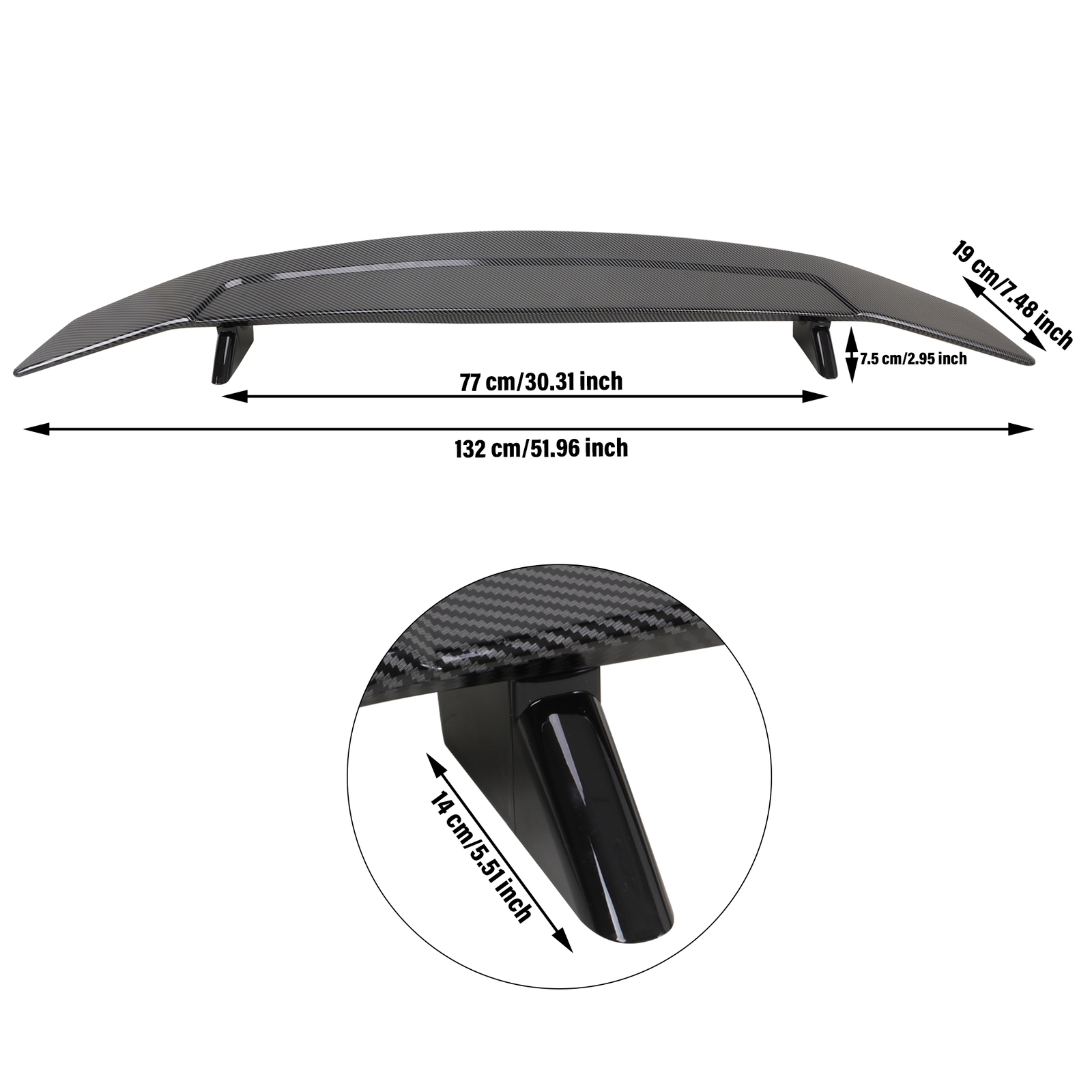 Unbranded 52''Universal 3D Carbon Fiber Rear Trunk Spoiler Wing GT Style Racing Car Sedan