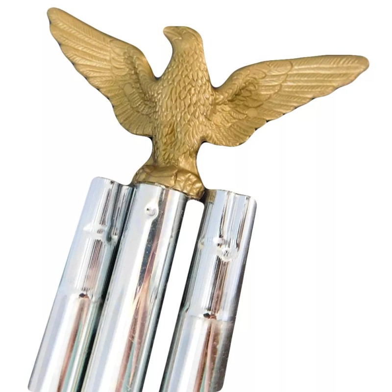 3 Section Galvanized Zine Steel Pole is 6 feet long with a 1-inch diameter and eagle top and silver finish.