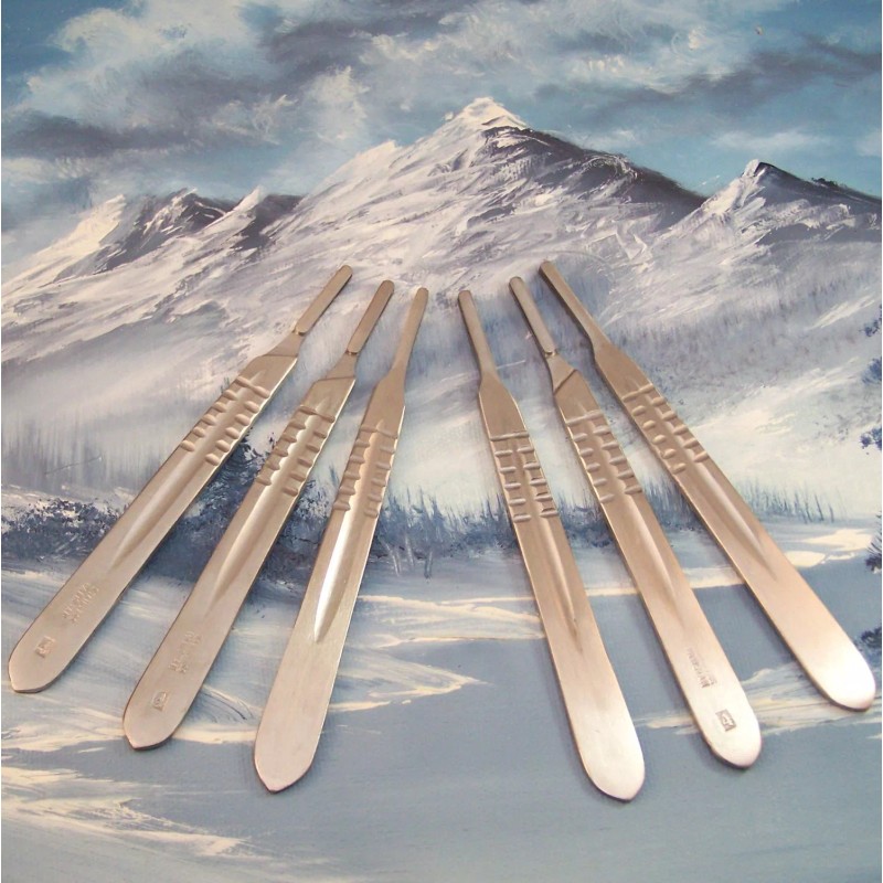 - Six (6) #4 Stainless Scalpel Handles (handle grip slots may vary).